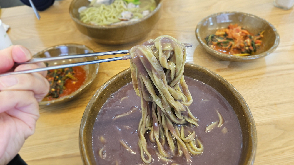 바지락에 비하면 팥칼국수는 아주 심심한 편이었다. 간이 거의 되어 있지 않은 자연상태 그대로의 팥죽같은 맛이었다. 사람의 취향에 따라 다르겠지만 개인적으로 팥죽에 설탕을 넣기 보다는 소금을 넣는 편이다. 왠지 팥의 달달함과 깊은 맛이 소금간을 만나면 더 강하게 나는 것 같다. 이미 달달한 팥죽에 다시 설탕을 넣으면 아무래도 뭔가 인위적인 느낌이 든다. 이것도 분명히 개인적인 차이라 하겠다. 특히 남녁에서는 팥죽에 꼭 설탕을 아주 많이 넣는다고 들었다. 언제가 콩국수에도 설탕을 잔뜩 넣는 목포 사람을 본적이 있는데 원래 그쪽에서는 이렇게 먹는 것이 전통이란다. 한국이 작은 나라 같지만 참 지방의 색깔이 이렇게나 다르다.