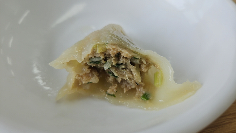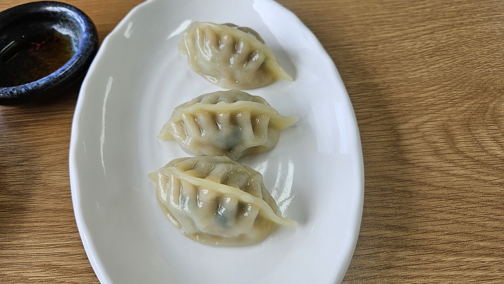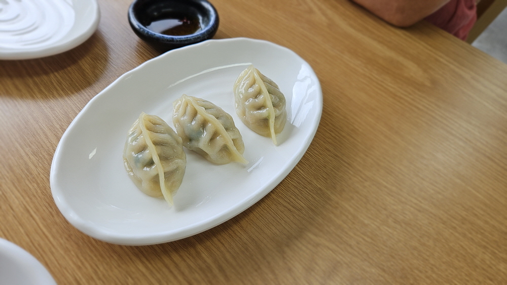 다양한 재료들을 섞어 제대로 된 조합의 맛을 낸다면 그것이 더 내공있는 깊은 맛일 것이다. 일단 주문해야 했는데 칼국수만 먹기가 그래서 콩국수와 만두도 시켰다. 처음 오는 곳이니 다양한 맛을 보고 싶었다. 만두 세알에 3,000원 이라는 아주 합리적인 메뉴가 있다. 솔직히 양이 많지 않은 사람들은 칼국수와 함께 왕만두를 5~6개 씩이나 먹기가 부담스런 것이 사실이다. 만두 세알에 3,000원이라면 한알에 1,000원이라는 부담없는 가격이 된다. 만두를 직접 만들지는 않았겠지만 아주 맘에 드는 맛이었다. 너무 달지도 않고, 퍽퍽하지 않고, 부드러우면서 고기맛이 살아 있는 맛난 만두였다.