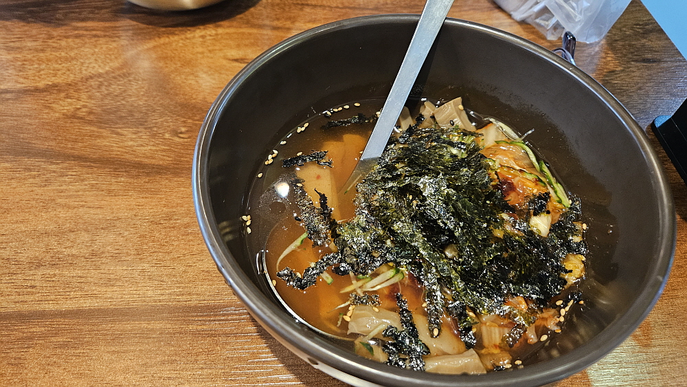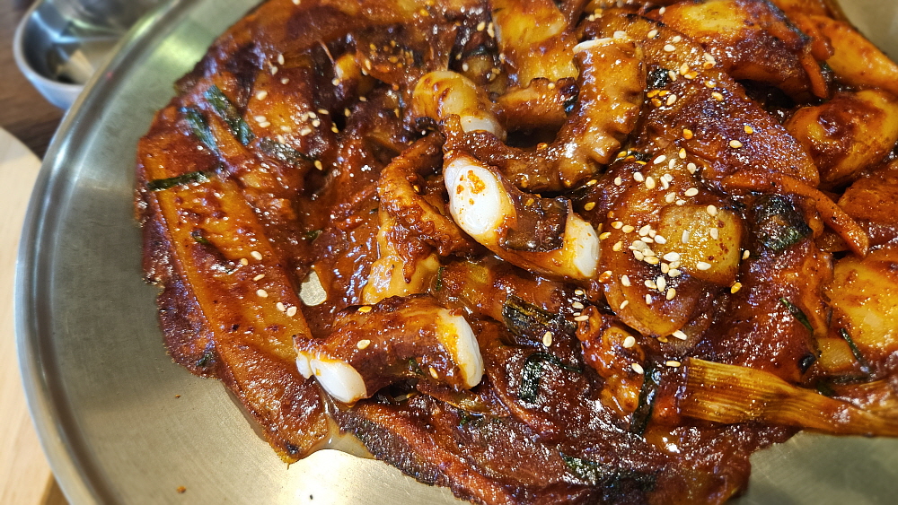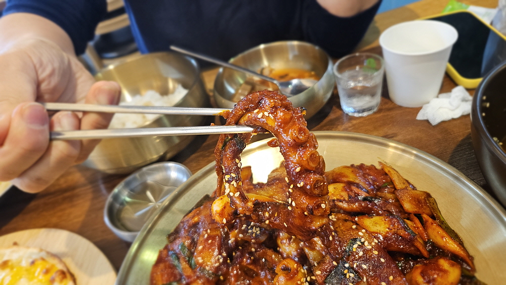 밖이 훤히 내다보이는 전망 좋은 식당이었다. 가격도 비싼 편이 아니었다. 부산이 낙지의 본고장이던가? 잘 모르겠네... 아무튼 바닷가라 그런지는 몰라도 낙지 가격이 저렴한 편이었다. 체인점이라고는 하지만 처음 보는 상호라 그런지 그냥 주인장 이름걸고 하는 집 같았다. 우리는 낙지볶음과 소주 한 병을 주문했다. 처음에 에피타이저 식으로 나오는 묵사발이 정말 괜찮았다. 묵사발 좋아하는 사람이라면 여기에 바로 밥을 말아서 먹었을 것이다. 전체적으로 깔끔하고, 가성비 좋고, 맛도 괜찮은 곳 같았다. 그런데 이상할 정도로 손님은 거의 없었다. 우리 말고는 단 한 팀만이 먹고 있었다. 이유가 뭘까?