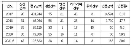 더불어민주당 김주영의원이 관세청으로부터 제출받은 ‘최근 5년간 관세불복 청구 현황’에 따르면, 과세전적부심사청구 인용률은 2019년 5.6%를 제외하면 2017년 31.3%, 2018년 47.7%, 2020년 59.3%로 증가하고 있으면 2021년에는 6월 현재 30%에 이르고 있다.