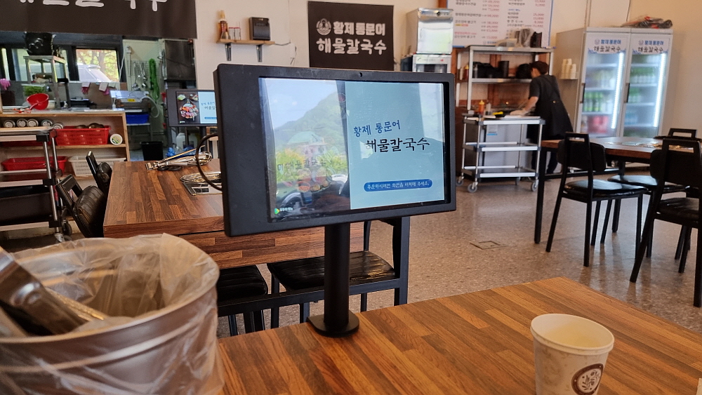 해물 중에서도 이집에서 강조하는 아이템은 바로 문어이다. 그것도 통문어란다. 문어는 비슷하게 생긴 사촌들인 오징어, 낙지, 쭈꾸미 중에서 가장 갑인 바다생물이다. 크기도 그렇고, 맛도 그렇고, 가격에서도 그렇고 문어가 단연 왕중에 왕이라 할 수 있다. 먹고는 싶지만 역시 가격의 압박이 있었다. 그래서 그냥 해물칼국수로 주문했다. 꼭 문어가 들어가야 맛이 좋은 것만은 아니지 않은가? 꽤나 넓은 홀에는 일요일임에도 손님들이 더러 있었다. 특히 단체로 보이는 술 손님들이 정말 왁자지껄 신나게 모임을 하고 있었다.