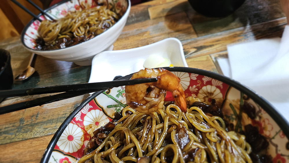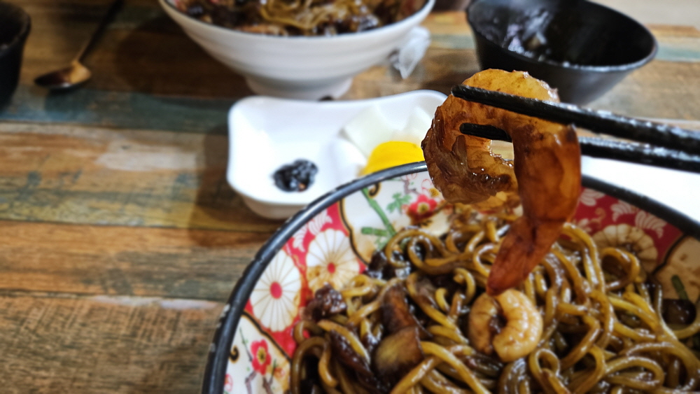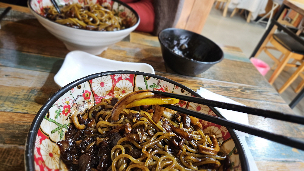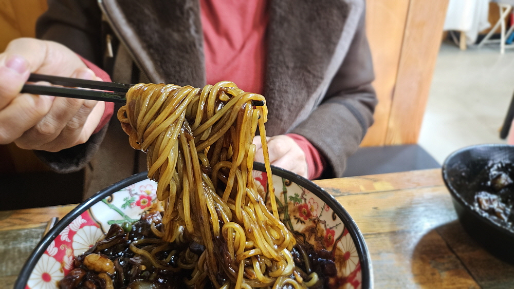 잘 비벼진 짜장면을 먹어 보았다. 입안 가득 감칠맛이 차고 넘쳤다. 아니 폭탄 터지듯 입안에서 감칠맛이 터져 버렸다. 처음 볼 때는 몰랐는데 여기 면이 진정한 중국집의 면이었다. 부드러우면서 찰지고 쫄깃한 반죽이 아주 잘 된 고수의 면이었다. 거기에 그렇게 과하게 달지 않은 짜장소스가 덮히는 환상의 조합이 되었다. 우리는 늘 이런 짜장면을 원하는 것 아닐까? 고덕동의 동네 어귀에서 또 이렇게 전문가의 음식을 만나게 되었으니 이날도 우리는 참 행운을 얻은 셈이다. 우린 정말 정신없이 먹었다. 짜장면은 불어 터질 시간없이 잘도 넘어가는 면이다. 이날은 더욱 그랬다. 언제 먹었나 싶을 정도로 순식간에 먹어 치웠다.