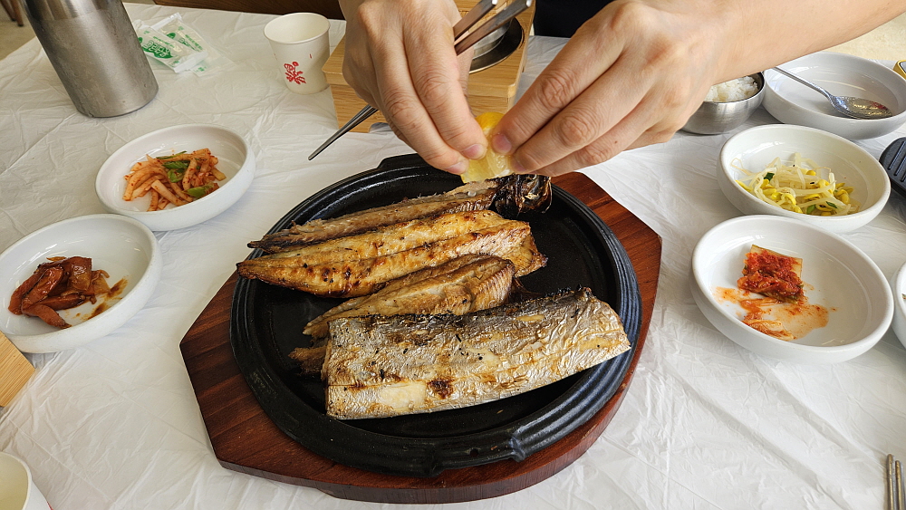 생선살을 발라 김치나 다른 반찬을 얹어 정신없이 먹었다. 역시 생선 마니아들의 성지될 곳이라 하겠다. 언제부터인지 우리는 생선구이에 꼭 와사비 간장을 찍어 먹는다. 어쩌면 일본식이 아닐까 싶기도 하다. 이런 반찬이 주는 만족도는 아주 높은 편이다. 평소보다 분명 밥을 많이 먹게 된다. 네 가지 생선 중에 역시 갑오브갑은 고등어였다. 통풍이라 조심해야 하지만 고등어의 익숙하면서 고소한 이 맛을 거부할 수가 없다. 임연수의 부드러우면서 고소하고 담백한 맛도 일품이다. 결국 생선은 다 맛있다. 오븐이나 연탄에 구웠을 때 특히 맛이 배가 된다.