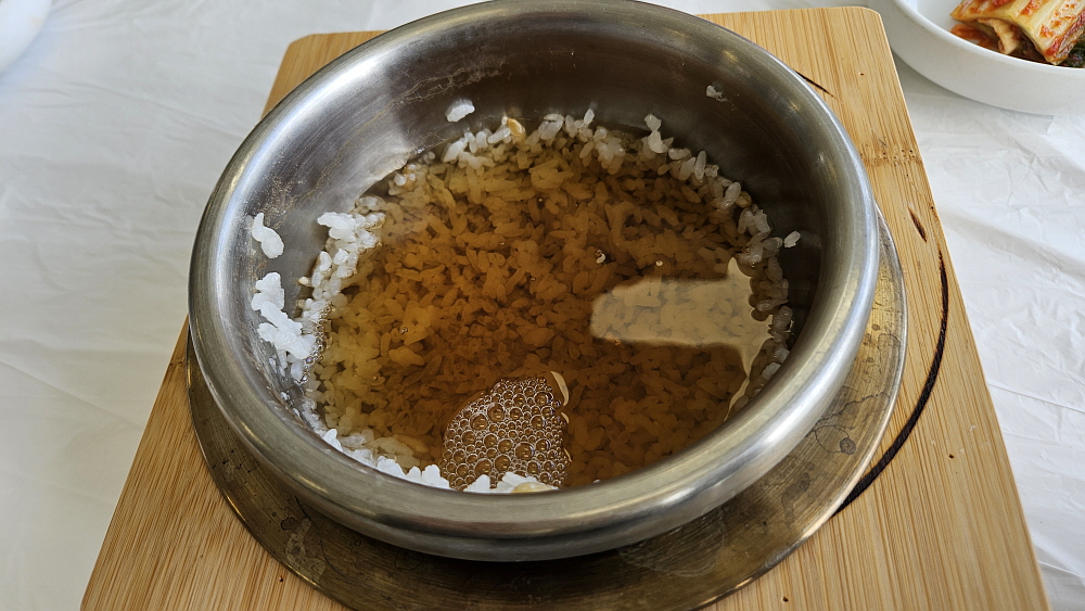 솥밥의 즐거움 중에 또 하나는 나중에 먹는 누룽지 숭늉이다. 숭늉에 생선살을 올려 먹는 것도 아주 훌륭한 조합이다. 이런 맛을 보기 위해 일부러 누룽지를 만들기도 하는 것 아닐까 싶다. 반찬의 간이 좀 심심한 편이라 아쉽기는 했지만, 그래도 밥 한 끼 제대로 먹는 기분으로는 최고였다. 밖이 훤이 내다 보이는 넓은 통창으로 풍경을 감상하면서 먹는 생선구이의 맛은 정말 좋은 것이었다. 운치까지 있는 셈이다. 가족들이 함께 운영하는 것 같은 편안한 분위기의 식당에서 제대로 된 점심 식사 맛나게 한 것 같다.