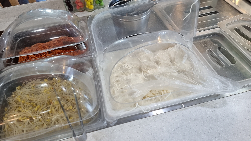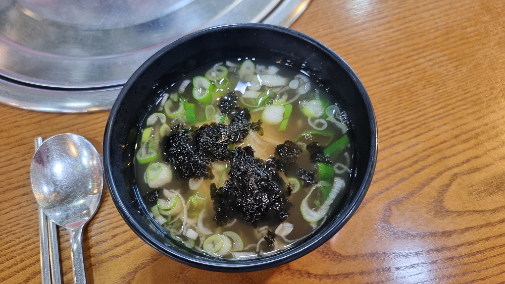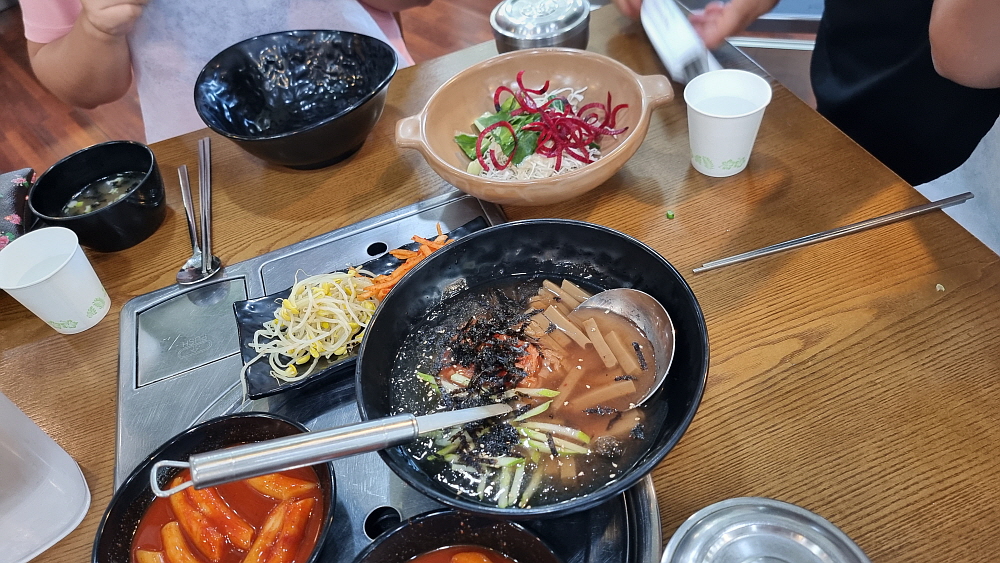 하지만 막상 가보니 가게 안의 인테리어까지 바뀐 것이 거의 없었다. 과연 여기가 감자탕을 팔던 곳이 맞나 싶을 정도로 전혀 그런 분위기가 아니었다. 사실 이집은 아주 예전에 파스타를 팔던 패밀리레스토랑 비슷한 곳이었다. 그 때 분위기가 아주 없어지지 않고 남아 있었다. 다만 변화가 있는 것은 테이블 마다 불을 피울 수 있는 렌지가 설치되었다는 점이다. 그거 말고는 바뀐 것이 없었다. 심지어 간단하게 만들어진 셀프바가 있는데 거기에서 국수나 떡볶이, 스프를 갖다 먹는 방식도 그대로 였다. 사실 이집은 잔치국수 맛집이었다. 국수가 맛있다면서 오는 사람도 있었을 정도다.