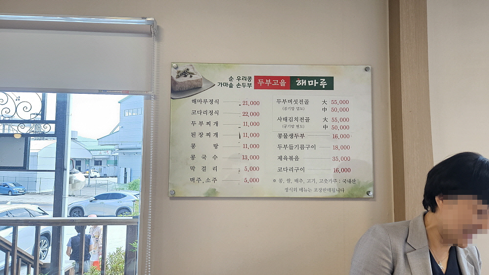 이천과 함께 우리나라 쌀을 대표하는 여주에서 제대로 점심을 먹게 되었다. 예전에 거의 오지 않았던 여주지만 이젠 제집 드나들듯 자주 가게 된다. 이날의 출장도 미리 약속된 것이었지만 점심을 어디서 먹을지는 알지 못했다. 여주 시청 근처에서 일을 보고 강천면으로 이동했다. 시청에서 약 15분 정도 차로 이동하면 이집에 올 수 있다. 이집의 이름은 '두부고을 해마루'라는 식당이었다. 여주쌀로 지은 밥과 직접 만든 두부에 생선구이와 제육도 나오는 집이란다. 가격은 일 인분에 21,000원이다. 합리적인 가격인지 아닌지 잘 모르겠다. 아무튼 푸짐한 한 상이 나오는 것은 맞다.