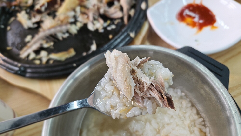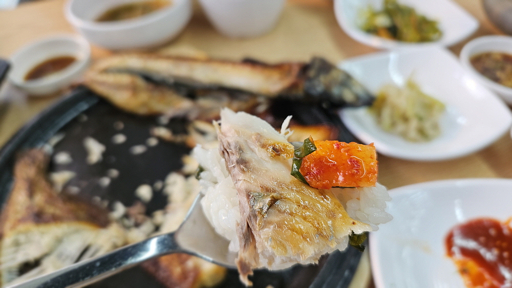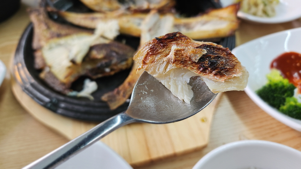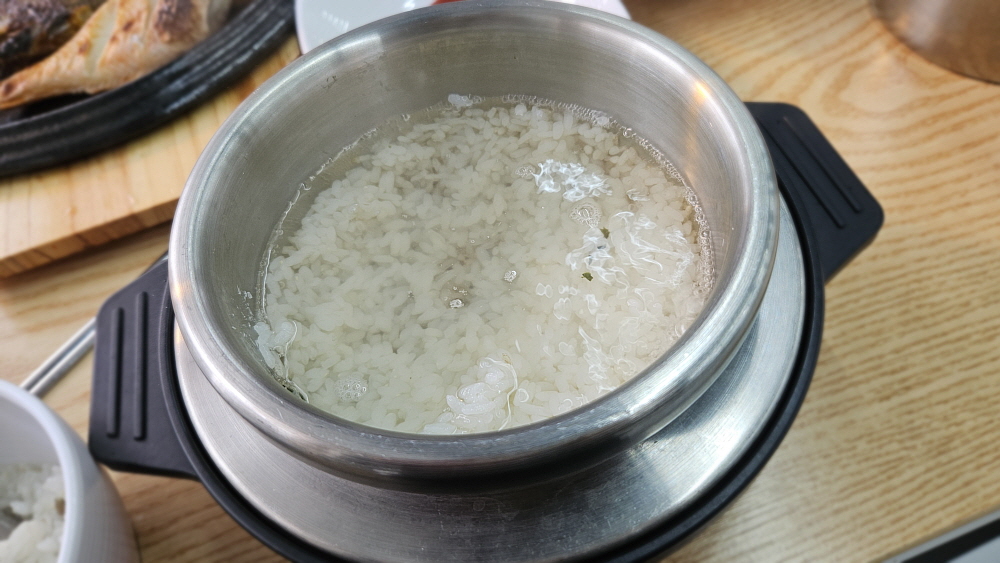 밥을 다 먹고 난 뒤 누룽지에 다시 생선살을 올려 먹었다. 여긴 그렇게 먹을 수 만큼 넉넉하게 생선이 나오는 편이다. 둘이서 먹기엔 부족함이 없었다. 구수하고, 편안한 누룽지는 소화도 잘 되고, 맛도 좋다. 한국인의 지혜가 들어있는 메뉴라 하겠다. 어느덧 우리의 식사는 마무리가 되었다. 처음엔 손님이 없는 것 같더니 우리가 먹는 사이에 네 팀이나 더 들어왔다. 그중 한 팀은 8명 정도 되는 단체였다. 하긴 이 정도의 가격과 양, 맛이면 손님이 안 올리가 없다. 생각해 보니 43번 국도변으로 요사이 생선구이 집들이 여러개 새로 문을 열었다. 즐겁고, 행복한 일이다. 생선구이로 점심을 먹으면 누군가에게 대접받은 것 같은 기분이 들어 좋다.