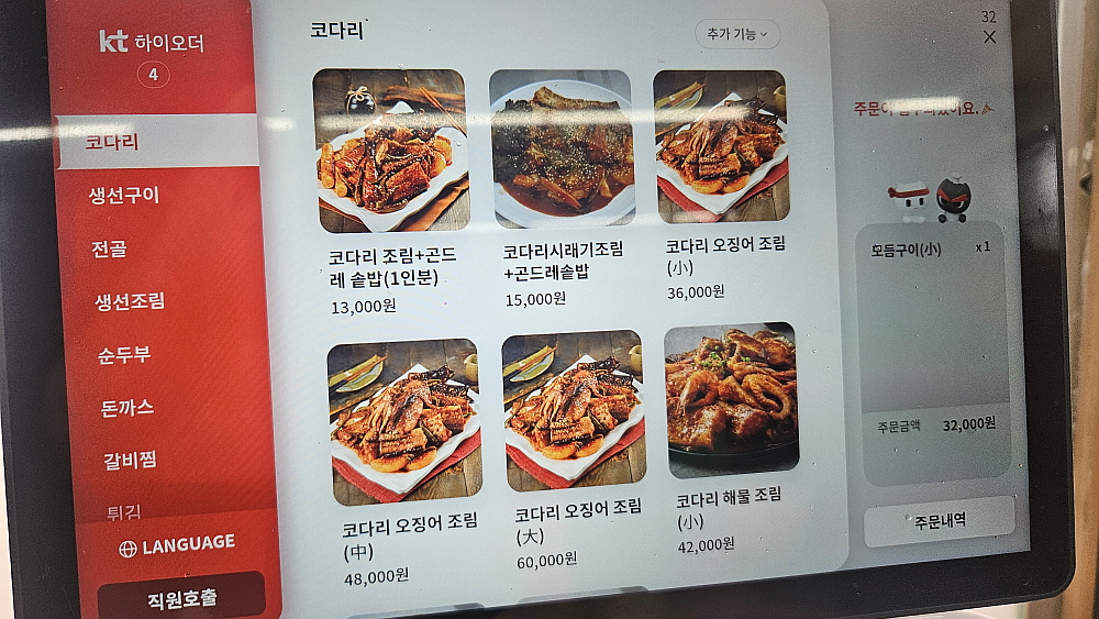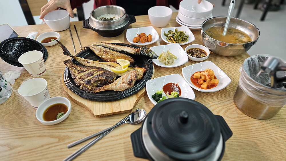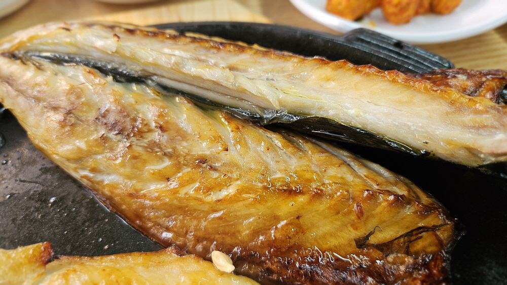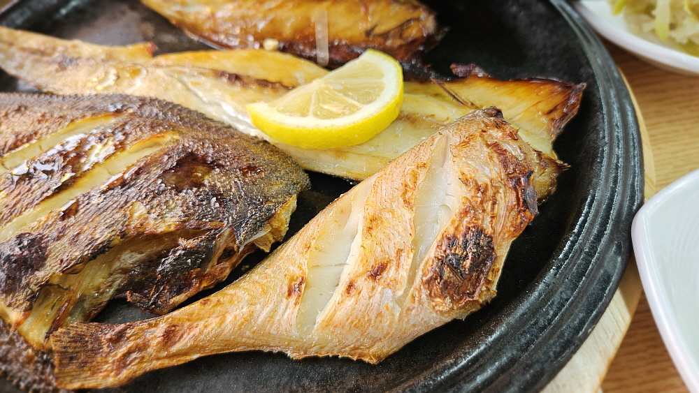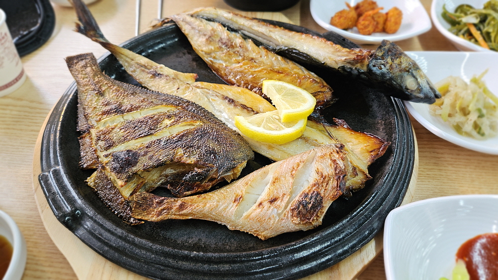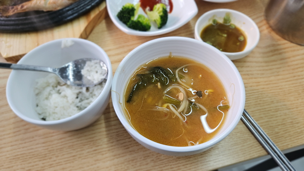 원래도 식당이었던 자리였는데 한동안 비어 있던 곳으로 새로 문을 연 이집이 영업을 하게 된 것이다. 새로 오픈한 집답게 실내는 엄청 깔끔하고 말끔했다. 요즘 어디나 있는 키오스크로 주문을 했는데 우린 2인이 먹을 수 있다는 생선구이 세트 소 사이즈를 주문했다. 32,000원이면 그리 비싼편은 아니다. 이 근처에 자작생선구이라는 집이 있는데 아마도 거기가 같은 메뉴의 가격으로 30,000원을 받았던 것 같다. 생선은 그 자체로도 값이 나가지만 굽는데 공이 많이 들어가니 그럴 수 있다고 위안을 삼았다. 분명 여기도 그냥 백반처럼 먹을 수 있는 된장찌개 같은 메뉴도 있긴 했다.