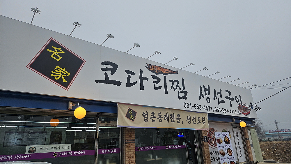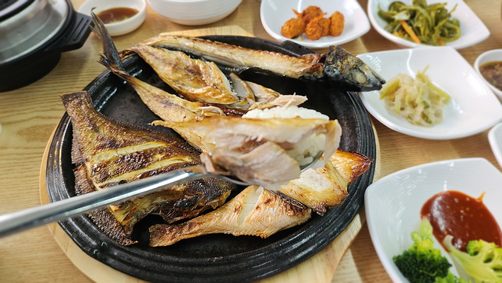 생선 좋아하는 사람들은 길을 가다 생선구이 간판을 보면 들어가고 싶어 엉덩이가 들썩인다. 입에선 넘 맛난 생선을 집에선 냄새때문에 잘 해먹을 수 없기 때문이기도 하다. 그리고 요즘 생선 값이 많이 오르기도 했다. 아무튼 이런 저런 이유로 생선구이 집은 그냥 지나치게 되지 않는 법인데 이날 우리가 그랬다. 포천시 과거 6군단 앞에서 있는 이집을 보는 순간 갑자기 차를 세우고 여기서 점심을 먹기로 한 것이다. 간판엔 분명 코다리찜이란 메뉴도 커다랗게 써 있지만 웬지 그 메뉴는 거의 생각이 나지 않고 그냥 생선구이라는 네 글자에 꽂혀 들어가게 되었다.