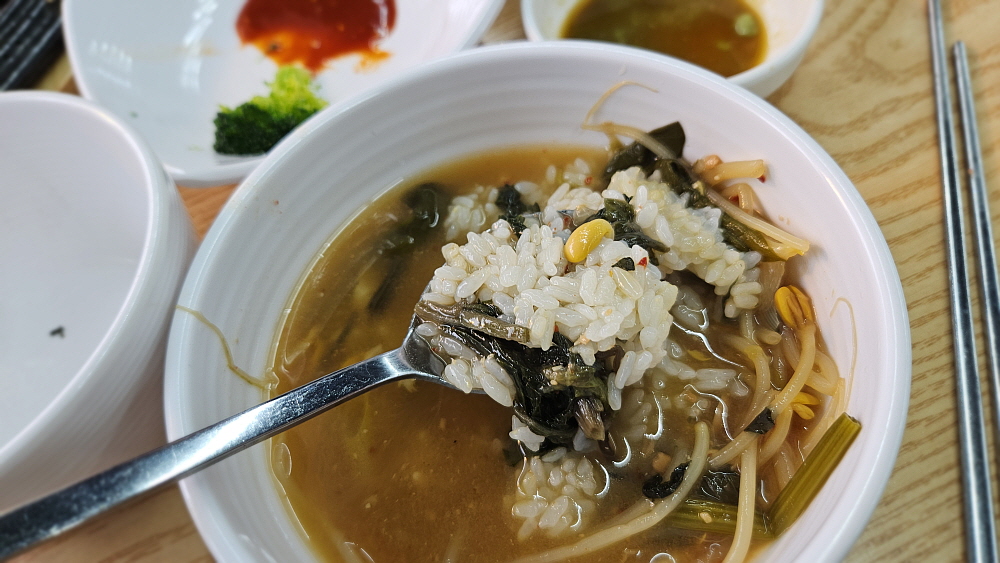 솥밥을 자세히 보니 가운데 뭔가 들어 있었다. 가만히 들여다 보니 곤드레 같았다. '아 여긴 메뉴에도 곤드레 나물이 들어 있구나...' 곤드레 나물밥은 또 하나의 완소 아이템인데 여긴 조금이긴 하지만 그것을 만들어 주는 곳이었다. 참 괜찮네~ 밥을 떠 내고 생선살을 발라 얹어 먹는 맛이란 정말 천상의 맛이다. 특히 자반 고등어의 감칠맛이란 하늘이 인간들에게 내어주는 축복과도 같은 맛이다. 밥이 그저 들어간다. 이집은 조금 달기는 하지만 깍뚜기도 아주 일품이었다. 시원한 맛이 강한 깍뚜기도 요즘이 제일 맛이 좋은 것 같다. 아무래도 주 재료인 가을무가 달고 시원하기 때문일 것이다.