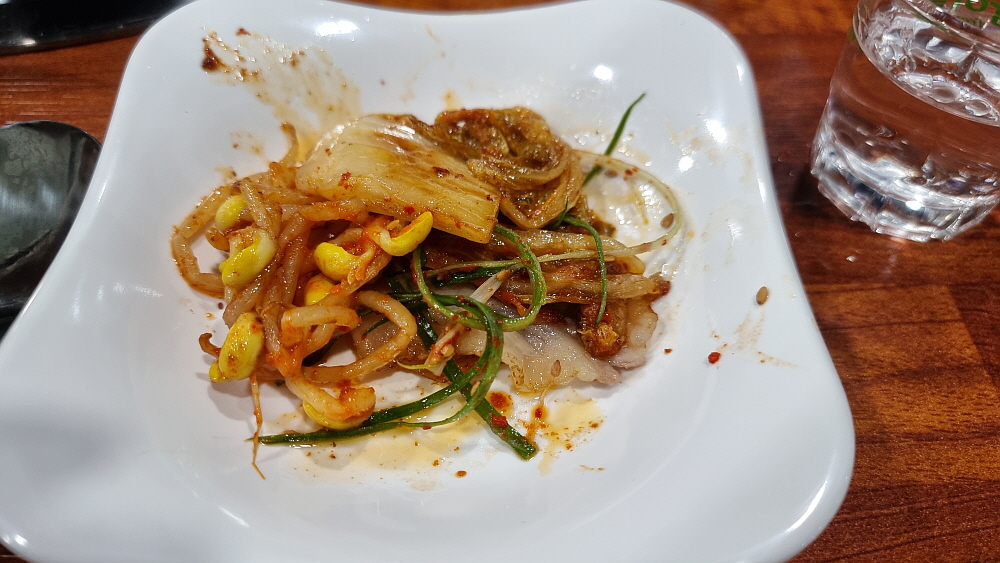 내심 고기를 더 먹을까? 밥을 볶아 먹을까 고민을 하다가 메뉴판에 있는 잔치국수를 주문했다. 고깃집에서 먹는 잔치국수가 또 별미라면 별미이다. 잘 익은 김치를 넣어 먹으면 이것도 훌륭한 밥이 된다. 기름진 고기를 먹은 후라 그런지 잔치국수의 진한 멸치맛이 아주 좋았다. 평소 다른 곳에서 먹었던 삼겹살과는 조금 다른 구성으로 이날은 참 배불리 잘 먹었다. 이런 맛에 외식을 하는 것이다. 그리고 집 근처에 있어 더 좋다. 부담이 없고, 편안하니 말이다. 자영업이 어렵다는 요즘 계속 이런 감동을 주는 곳으로 남아 있으면 좋겠다.