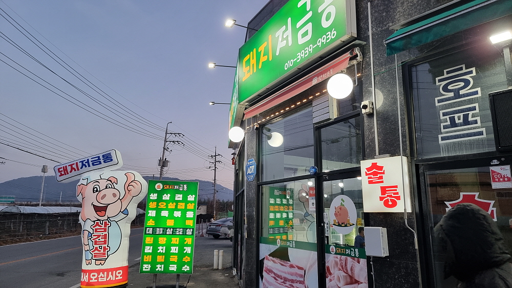 소흘읍 초가팔리 갈월중학교 부근은 송우리 시내와 거리가 멀지는 않지만 약간 섬처럼 떨어진 곳이다. 물론 걸어서 10분 정도 나가면 송우리 시내에 갈 수 있지만 그냥 맘편하게 운동복 차림으로 와서 가볍게 먹을 수 있는 동네 술집이 그리운 날도 있다. 갑자기 추워진 날씨 탓에 이날이 좀 그랬다. 얼마 전 곰탕집이 있던 곳이 삼겹살을 파는 식당으로 바뀌었는데 이름이 참 재미있다. '돼지저금통'이다. 생각해 보면 저금통은 꼭 돼지모양이었다. 복을 가져다 주기 때문일까? 소도 있고 말도 있는데 저금통은 다 돼지모양이다.