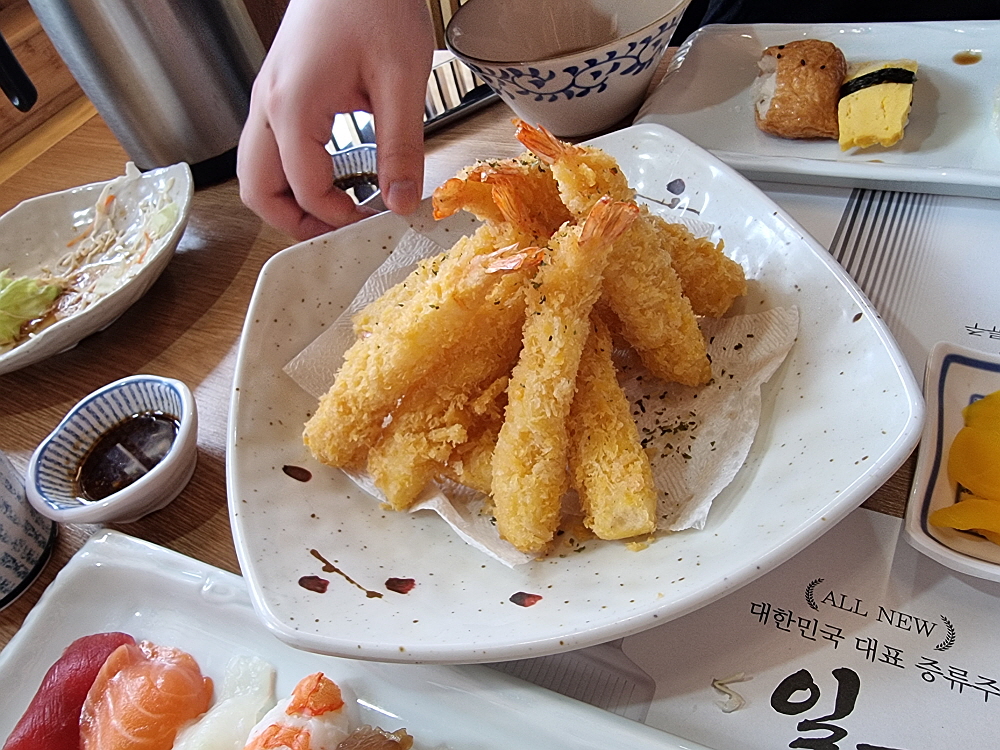 함께 간 아들들은 이 정도 양으로 배를 채우기 어려울  듯 하여 새우튀김도 주문했다. 일식의 커다란 또 하나의 기둥은 튀김이 아니던가? 새우튀김은 어쩌면 튀김 중에서 왕같은 존재다. 그런데 이집에선 이마저도 맛이 좋았다. 참 신기한 일이다. 기대하지 않고 가서 그런가 감동이었다. 심지어 입가심 비슷하게 먹는 막기도 맛이 좋았다. 이러면 곤란한데 말이다. 자주 와야 할 것은 압박감이 생기는데... 어쨌든 손님 입장에서 내 돈을 내고 먹는데 이렇게 맛좋고, 푸짐하면 얼마나 고마운지 모르겠다. 예상치 못한 만족이 주는 행복감도 좋고 말이다.