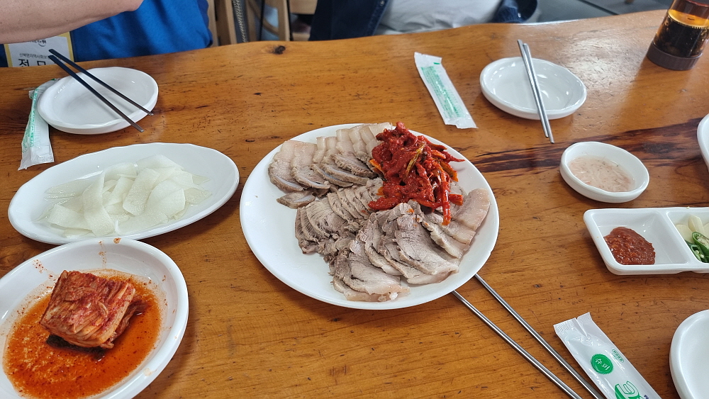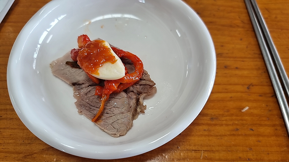 분점이라는 간판 문구가 선명한데 결국 한 집안에서 장사하고 있는 것은 맞다. 그러니 당연히 맛은 거의 비슷하다. 본점은 몇 번 가 봤지만 분점은 이번에 처음 가봤다. 본점보다 규모는 작지만 포스는 같다. 점심시간이면 사람들로 북새통을 이룬다. 우리처럼 단체로 80명이 가면 웬만한 식당에선 손님을 받을 수도 없겠지만 여긴 자리만 예약하고 주문은 와서 하란다. 80명 정도 단체는 별로 대수롭지 않다는 반응이었다. 과연 명가임에 틀림없다. 하긴 시스템만 잘 갖추고 있다면 100명이 온들 뭐가 문제가 될까?