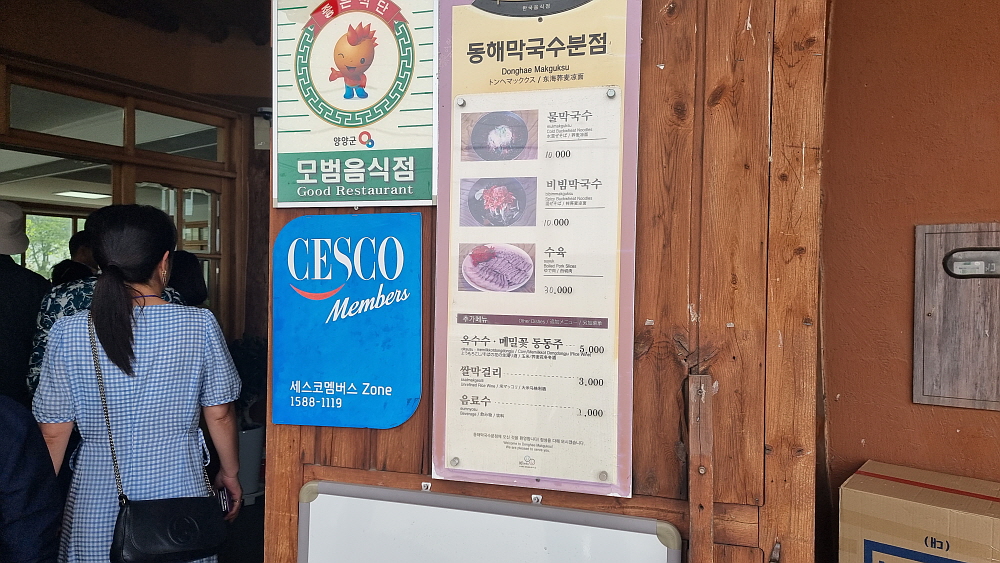 강원도에 막국수 집이 많은 것은 잘 알려진 사실이다. 막국수라는 이름에서부터 뭔가 투박하고 소박하고 그런 느낌인데 강원도라는 지역과도 잘 매칭되는 이름같다. 메밀이 많이 나는 지역이라서 그런 것 같기도 하고, 논이 적은 산지이기 때문에 쌀보다 잡곡을 많이 먹었기에 그런 것 같기도 하다. 아무튼 동해안에는 우리나라 막국수 집들의 절반은 몰려 있는 것 같다. 그 중에서도 간장양념이라는 다소 특이한 맛을 자랑하는 곳이 있으니 본점이 속초에 있는 동해막국수 이다. 본점은 원래 집안에서 하던 곳이고, 이곳 양양에는 본점 사장의 동생이 분점을 내서 장사를 한단다.