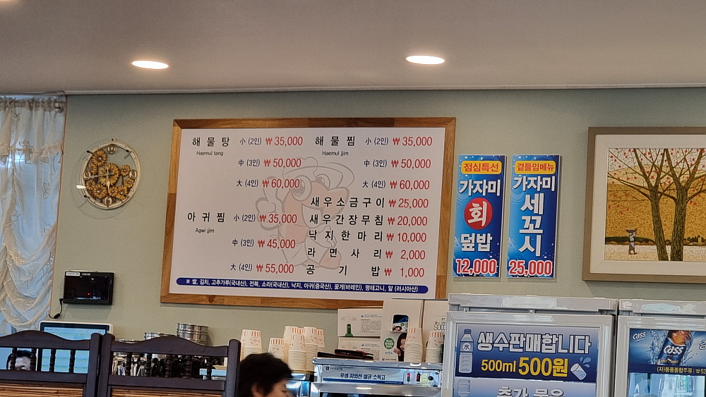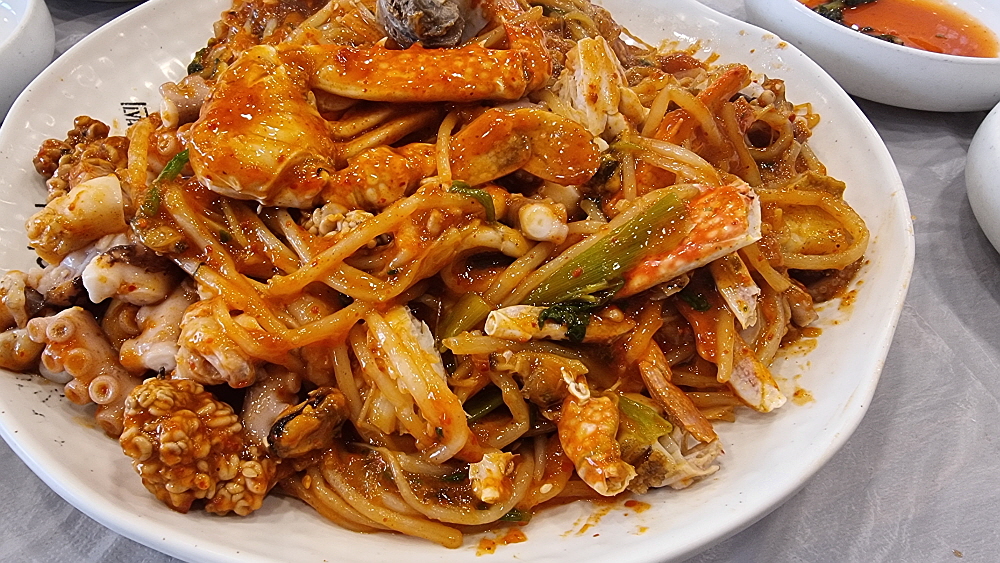 이름하여 천곡해물탕이란 집이었다. 여기가 천곡동이라 이런 상호를 갖게 되었나 보다. 동해시에는 유난히 해물탕집이 많았다. 바닷가라 그런 것인지, 여기 사람들이 해물탕을 좋아하는 것인지 잘 모르지만 다른 지역에 비해 월등히 많아 보였다. 우린 해물탕이 아니라 해물찜을 주문했다. 우린 거의 90% 이상 탕보다는 찜을 먹는다. 선호가 그런 것이다. 넓직한 실내에 깔끔한 분위기에서 가성비도 아주 좋았다. 요즘 3만 원대의 해물찜이 과연 있을까 싶은데 여긴 35,000원 이었다. 이런 가성비가 현지이기 때문에 가능한 것일까?