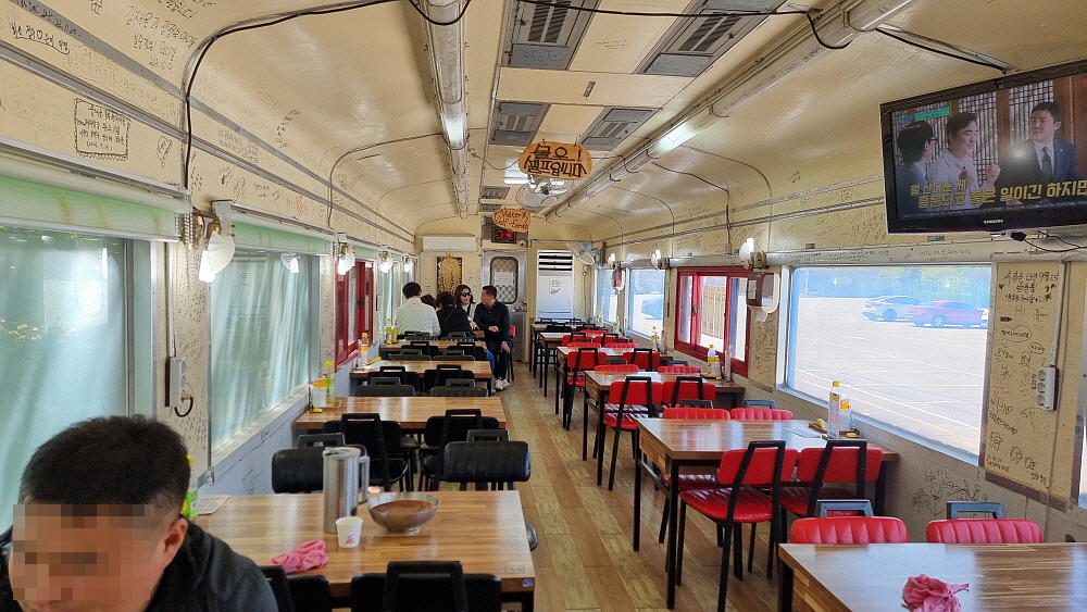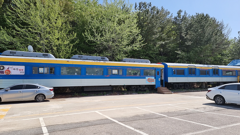 조금 큰 병이긴 했지만 막걸리 하나가 7,000원이면 싸진 않다. 신사임당이라는 지역 막걸리가 유명한 모양이다. 어딜가나 이 근방에서는 이 막걸리를 쉽게 볼 수 있다. 그런데 도토리묵이 조금 작아서 약간 실망했다. 하긴 저것만저 다 먹지 못했으니 뭘 더 바라랴? 싱그러운 봄날 한 낮에 열차식당에 앉아 도토리묵과 막걸리를 먹는다는 자체가 즐겁고 행복한 일이다. 다른 무엇이 더 필요할까? 생각해 보면 여행은 잘 먹고, 잘 자고, 잘 노는 것이 다이다. 좋은 사람들과 어딘가로 떠난다는 것 자체가 좋은 것이다. 이 봄은 그런 여행의 묘미를 만끽할 수 있는 시기였다.