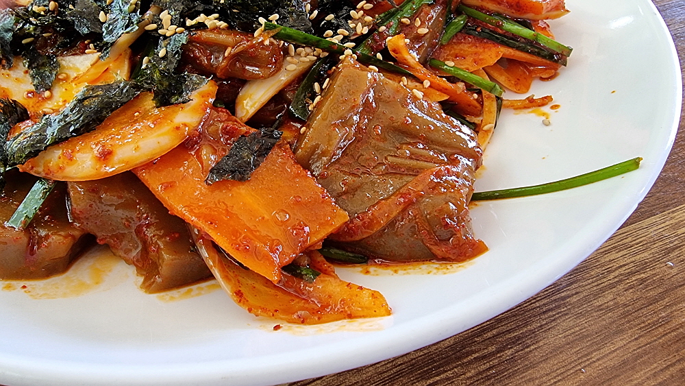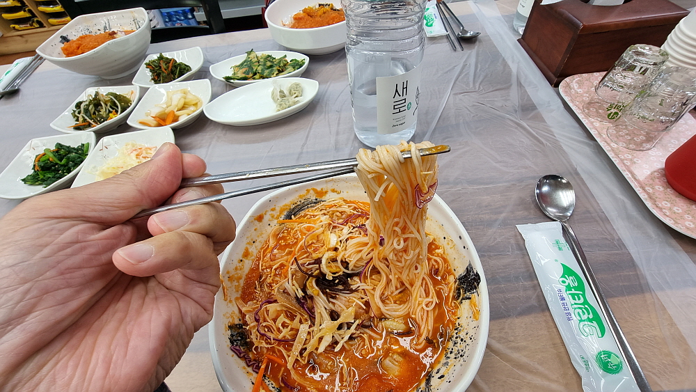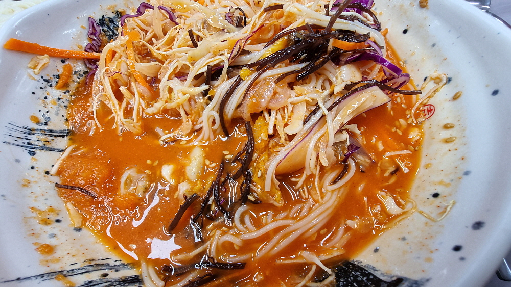그런데 물회의 모습이 마치 소스를 뿌려 놓은 것처럼 걸죽한 것을 볼 수 있다. 원래 물회라는 것이 이런 비주얼이었던가? 이것보다는 물이 더 많지 않았나? 하는 생각을 잠시 해봤다. 그런데 거진항에서 살았었다는 일행이 원래 거진항의 물회는 이런 모양이 맞단다. 그리고 강릉에서 먹었을 때보다 훨씬 시큼했는데 마치 물 반 식초 반 같았다. 이것도 이 계절엔 이렇게 먹는단다. 안 그러면 재료가 상하기 쉬워 먹는 사람이 탈이 날 수 있다는 것이다. 아무리 그래도 글쎄 개인적으로는 너무 시었다. 식초를 그닥 좋아하지 않는 사람에겐 참 넘기 힘든 벽처럼 느껴졌다.