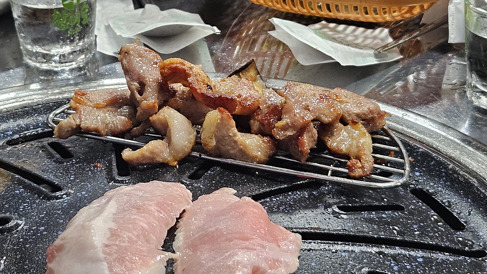 이곳을 잘 아는 일행이 있어 숙성고기라는 쉽게 만나기 어려운 고기를 먹을 수 있게 되었다. 식당은 적당한 크기이다. 밖에서 볼 때보다는 안에 들어서면 아담하다는 느낌이 더 강하게 든다. 저녁 시간 실내에는 몇 팀의 손님들이 이미 저녁 만찬을 즐기고 있었다. 우리는 항정살과 갈매기살인가를 주문했다. 언뜻 봐서는 숙성된 고기인지 그냥 도축해서 가지고 온 것이지 구분이 잘 되지 않았다. 하지만 불위에 놓고 구우면 분명 다른 식감이 있다. 양념을 하지 않은 생고기인데도 뭔가 달달한 것을 뿌린 것처럼 약간 달짝지근한 맛이 난다. 이래서 숙성고기를 고급이라 하는 모양이다.