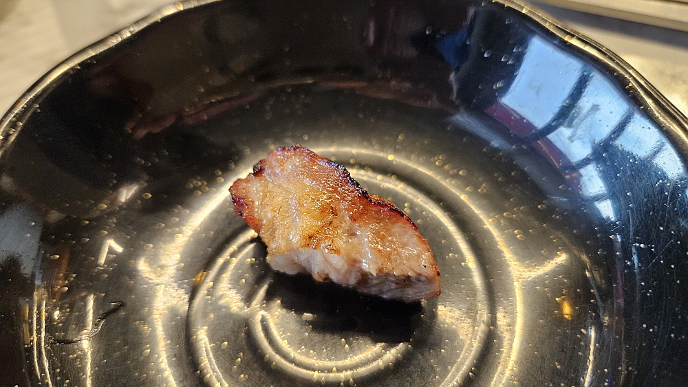 익는데 조금 시간이 걸리기는 했지만 막상 익은 다음에 먹어보니 완전히 새로운 체험이었다. 신세계를 경험했다고 해야할까? 기름기가 거의 없는 전지같은 식감에 포실포실한 목살의 풍미도 있고, 무엇보다 엄청 고소한 맛이 강했다. 등심에 붙어 있었다고 하더니 이렇게 건강하고 맛난 부위가 있었다. 젓갈에 찍어 먹는 맛도 좋았고, 그냥 소금만 찍어 먹어도 소주 안주로 이만한 것이 없지 싶을 정도로 훌륭했다. 역시 사람들의 평가가 정확한 것 같다. 입맛은 다 비슷하니까 말이다. 새송이 버섯을 잘게 찢어 먹는 맛도 좋았다. 역시 고기는 고기전문점에서 먹어야 제대로 된 맛을 볼 수 있다.