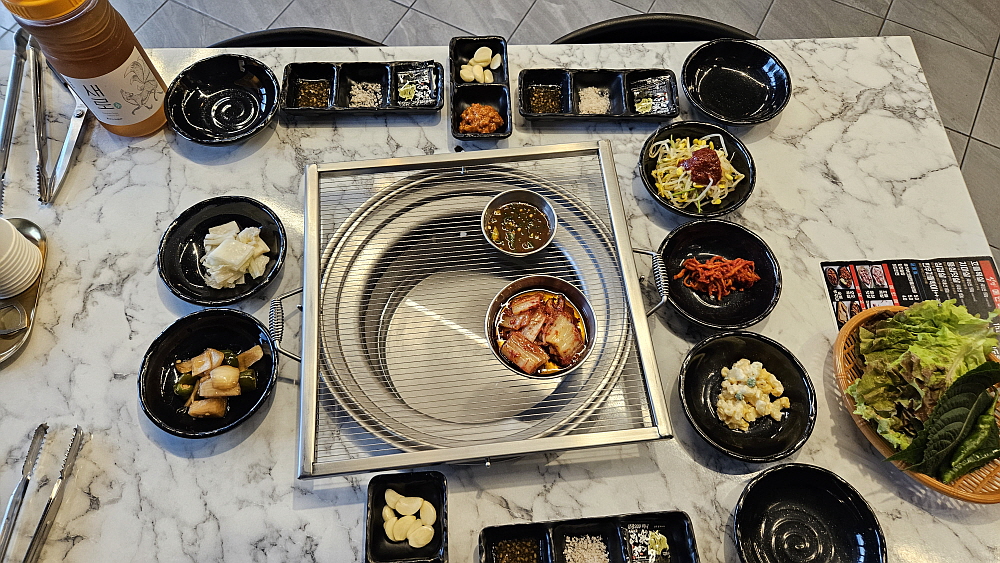 오후 5시가 조금 안 된 시간이라 식당 안에는 한팀의 손님만 있었다. 밖에서 볼때보다 실내는 더 컸고, 분위기는 전형적인 고기집이었다. 고기를 굽는 식당은 불판이 있어야 하기에 이런 구조가 나올 수밖에 없다. 메뉴판을 보니 처음 보는 음식들이 있었다. 특히 눈길을 모은 아이템은 바로 등심덧살이라는 부위였다. 이런 부위의 돼지고기가 있었던가? 돼지의 등심 안쪽에 있는 부위라는데 전엔 본적이 없는 메뉴였다. 과연 맛이 어떨까? 일단 큰 모험을 하기는 싫어 2인분만 주문했다. 먹다가 괜찮으면 더 주문하면 되는 것이니 말이다. 안전하게 시작하는 작전으로 가기로 했다.