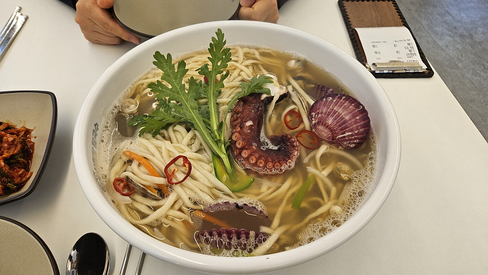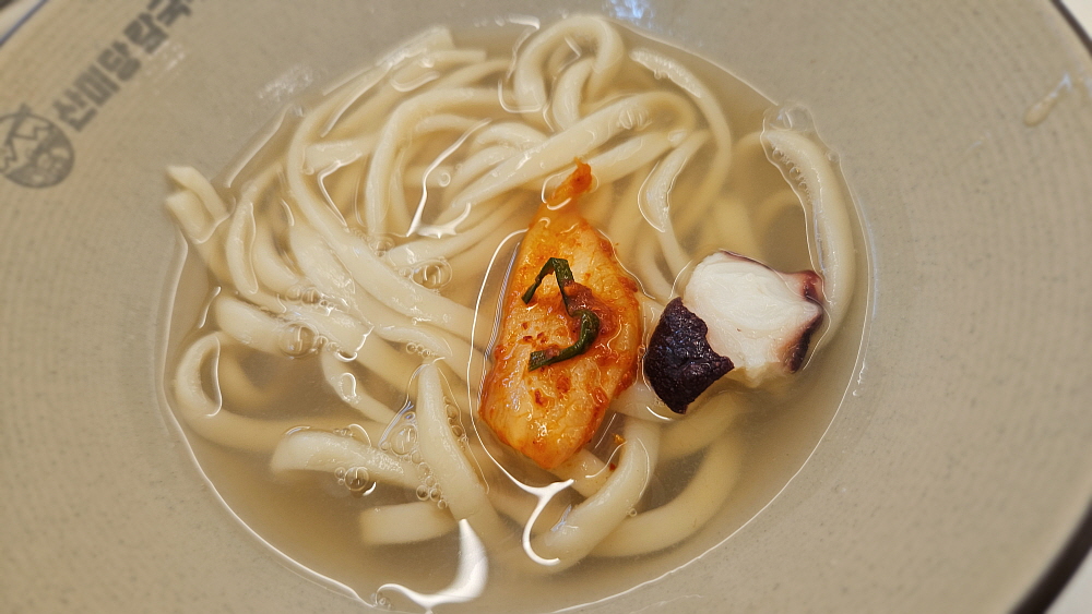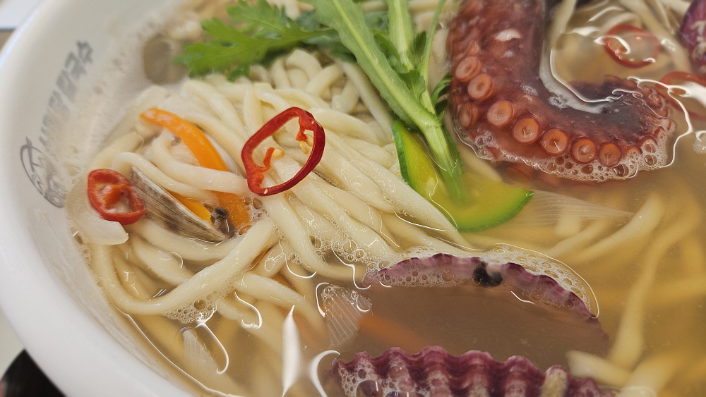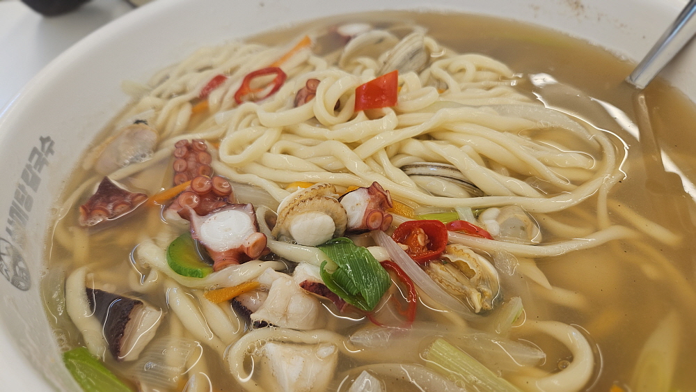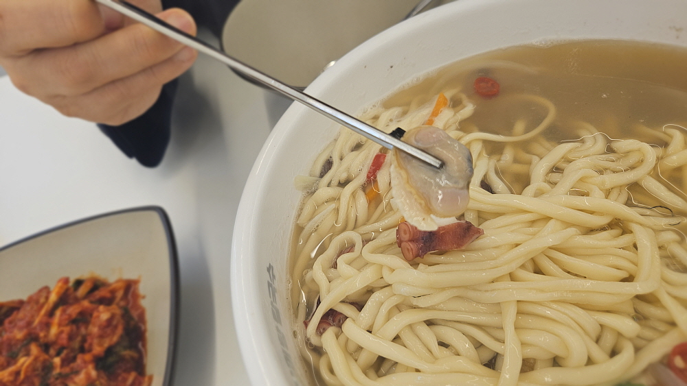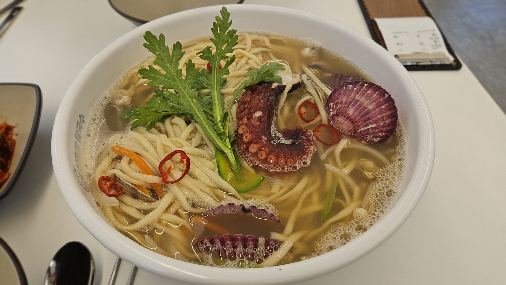 그런데 칼국수가 나온 다음에 보니 엄청 커다란 문어 다리가 떡 하니 자리를 잡고 있었다. 이렇게 큰 문어 다리가 3천 원밖에 안 되다니 참 놀라운 일이다. 동죽칼국수를 먹어 본 것이 이번이 처음은 아니다. 하지만 이런 비주얼일 것이라 예상치 못했다. 마치 우리가 그렇게도 좋아하는 바지락 칼국수랑 너무 비슷하게 생겼다. 국물을 먹어보니 맛도 그랬다. 원래 동죽은 국물을 내는 조개는 아닌 것으로 알고 있는데 말이다. 동죽은 주로 조개구이의 재료가 아니던가... 아무튼 횡재한 기분이었다. 가성비 좋고, 맛도 그렇고, 커다란 문어도 먹게 되었고 이래 저래 참 기분 좋은 집이다.