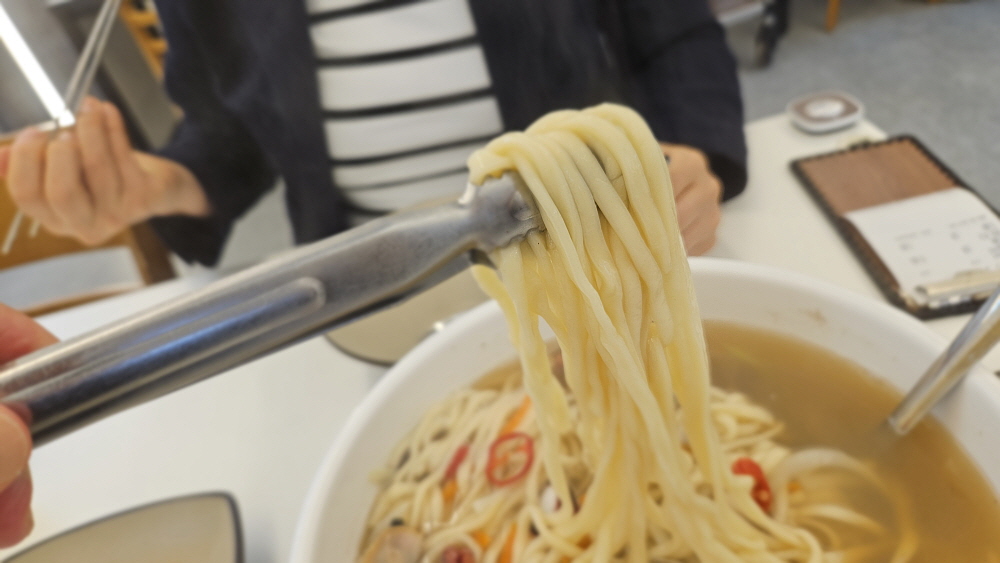 칼국수의 또 다른 생명인 면도 참 부드러우면서 쫄깃한 식감이 맘에 들었다. 전체적으로 너무 괜찮은 집이란 생각이다. 이런 집이 동네에 있으면 정말 자주 갈 것 같다. 아무튼 우리는 칼국수 삼매경에 빠졌다. 이런 국물은 치명적으로 짜다 해도 먹을 수밖에 없다. 그리고 탄수화물 덩어리라 해도 면을 먹지 않을 수 없다. 동죽조개와 가리비를 꺼내 먹는 재미도 쏠쏠했다. 도대체 어떤 재료로 이런 국물을 만들었는지 궁금했다. 비법이 있을텐데 말이다. 밥까지 말아 먹고 싶은 충동을 억눌러야 할 정도로 우린 완전히 이집의 칼국수 맛에 빠져 들었다.