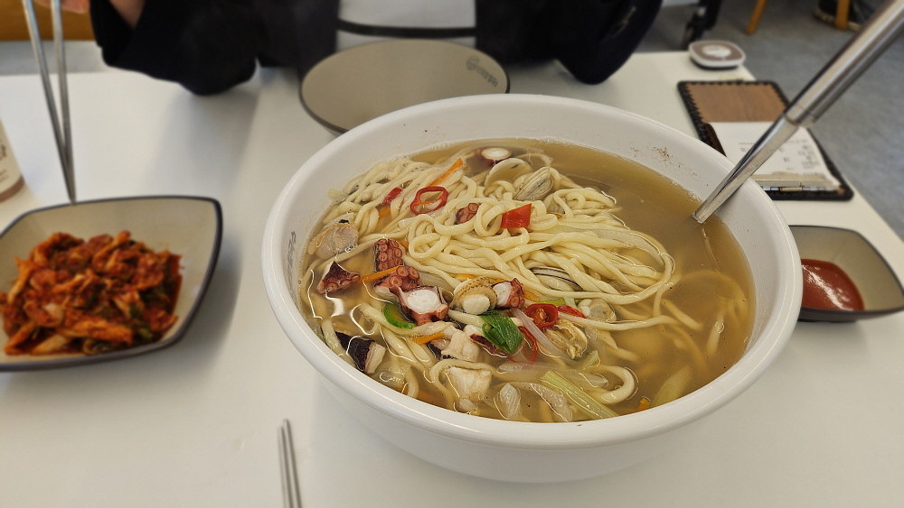 그런데 칼국수가 나온 다음에 보니 엄청 커다란 문어 다리가 떡 하니 자리를 잡고 있었다. 이렇게 큰 문어 다리가 3천 원밖에 안 되다니 참 놀라운 일이다. 동죽칼국수를 먹어 본 것이 이번이 처음은 아니다. 하지만 이런 비주얼일 것이라 예상치 못했다. 마치 우리가 그렇게도 좋아하는 바지락 칼국수랑 너무 비슷하게 생겼다. 국물을 먹어보니 맛도 그랬다. 원래 동죽은 국물을 내는 조개는 아닌 것으로 알고 있는데 말이다. 동죽은 주로 조개구이의 재료가 아니던가... 아무튼 횡재한 기분이었다. 가성비 좋고, 맛도 그렇고, 커다란 문어도 먹게 되었고 이래 저래 참 기분 좋은 집이다.