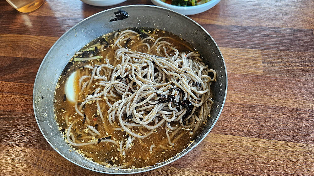 다소 투박한 듯한 메밀면이 장점이자 단점이었다. 자연스럽고 건강한 맛이지만 한 그릇 만 원이라는 가격을 생각하면 좀 더 면발을 고급지게 하려는 노력이 필요하지 않을까 하는 생각을 해 봤다. 물론 맛은 괜찮았다. 전체적으로 아주 조화롭고, 맛난 한 그릇의 막국수였음에 이견이 없다. 간장 베이스 양념은 특이한 식감을 선사한다. 뭔가 평양냉면 같으면서도 퓨젼 같은 느낌이라고 할까? 암튼 맛이 깊은 것이 아주 훌륭했다. 면발의 단점만 보완한다면 아주 완벽한 한 그릇이었다. 여긴 양주 현지 사람들의 맛집이라 했다. 외지인들이 오기 힘든 접근성에 다소 한적한 시골의 모습이 그렇다.
