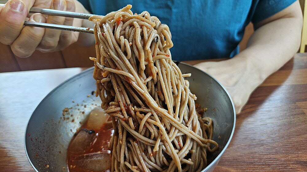 물가가 올라 외식가격이 오르면서 가장 아쉬운 것이 늘 먹었던 막국수를 맘껏 먹지 못한다는 것이다. 막국수라는 이름처럼 그냥 편하게 막 먹는 국수였는데 이젠 거의 평양냉면 수준으로 값이 올랐다. 메밀이라는 같은 재료를 사용하지만 분명 가는 길이 달랐던 두 음식이 물가상승이라는 시대적인 변화의 흐름속에서 비슷한 음식이 된 것이다. 메밀 값이 많이 올라다고는 하지만 그래도 막국수 가격이 만 원이 넘는 현실은 받아 들이기 쉽지 않다. 과거 이야기를 하자면 끝이 없지만 주머니 사정 어려운 서민들이 부담없이 한 그릇 먹던 막국수가 아닌 것이다.