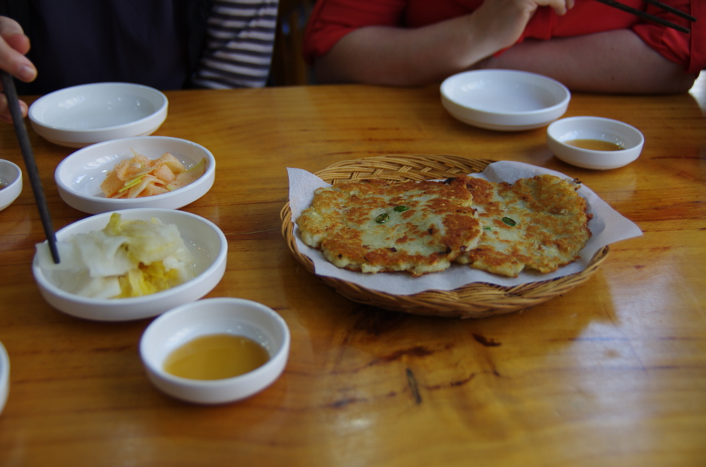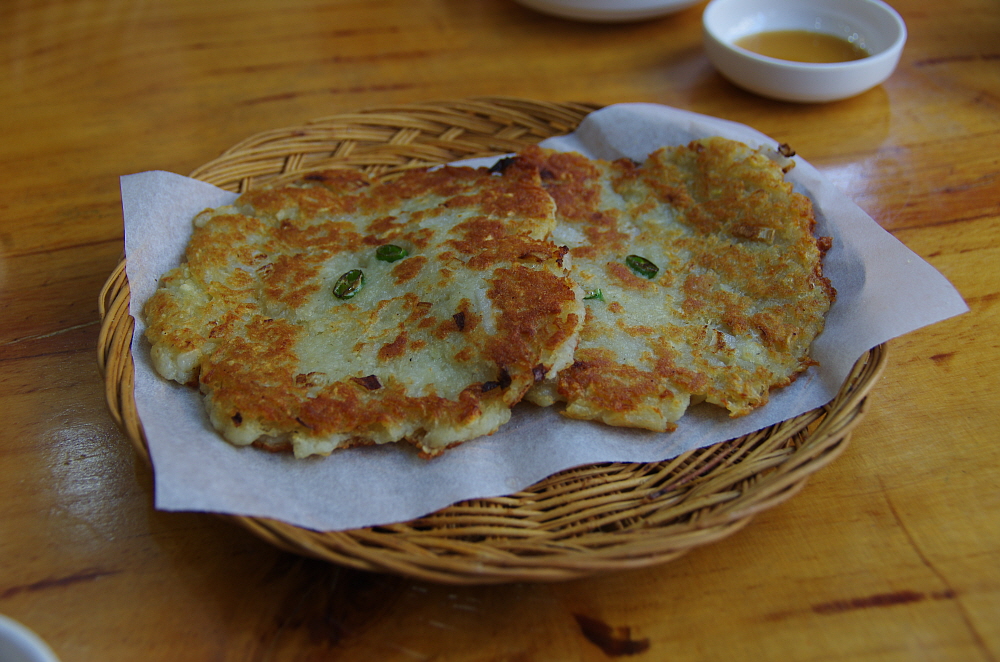 여긴 다른 막국수집과 차별화된 메뉴가 있는데 참기름 막국수이다. 여기 메뉴이름으로는 순한막국수라 되어 있다. 이 음식은 까막골 막국수 같은 집에 있는 참기름을 듬뿍 넣은 담백한 막국수를 의미하는 것이라 보였다. 하지만 우린 그냥 늘 먹던 물과 비빔막국수를 주문했다. 아무래도 처음 오는 집인데 모험을 하기는 그렇고, 가장 노멀한 것부터 공략하는 것이 현명한 일이리라 생각했다. 그리고 서브 메뉴로 감자전도 주문했다. 보통 막국수 집들은 메일전이나 녹두전을 만드는데 여긴 감자전이다. 하긴 이건 정석이라는 것이 없다. 가게마다 특징이 있는 부분일 것이다.