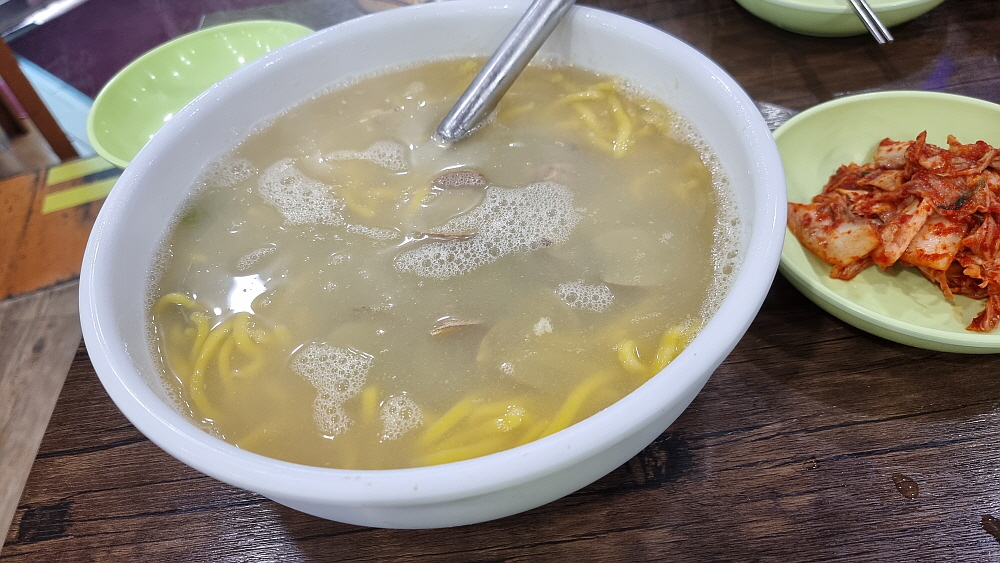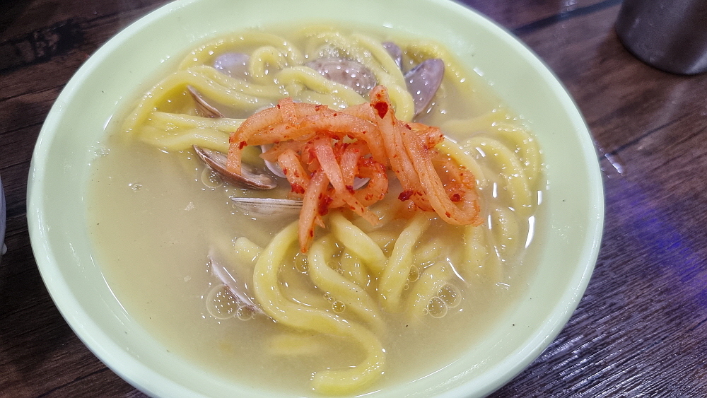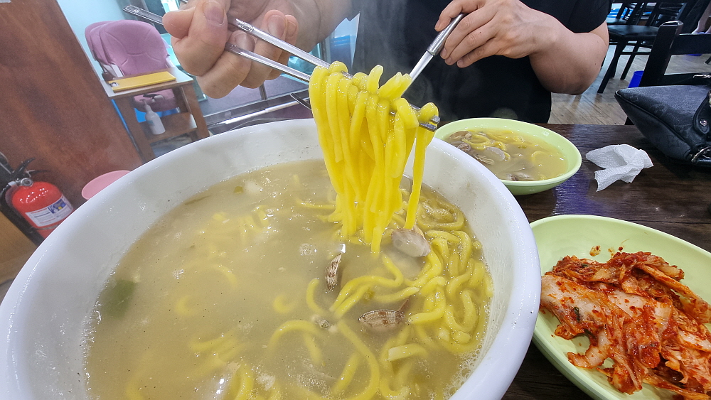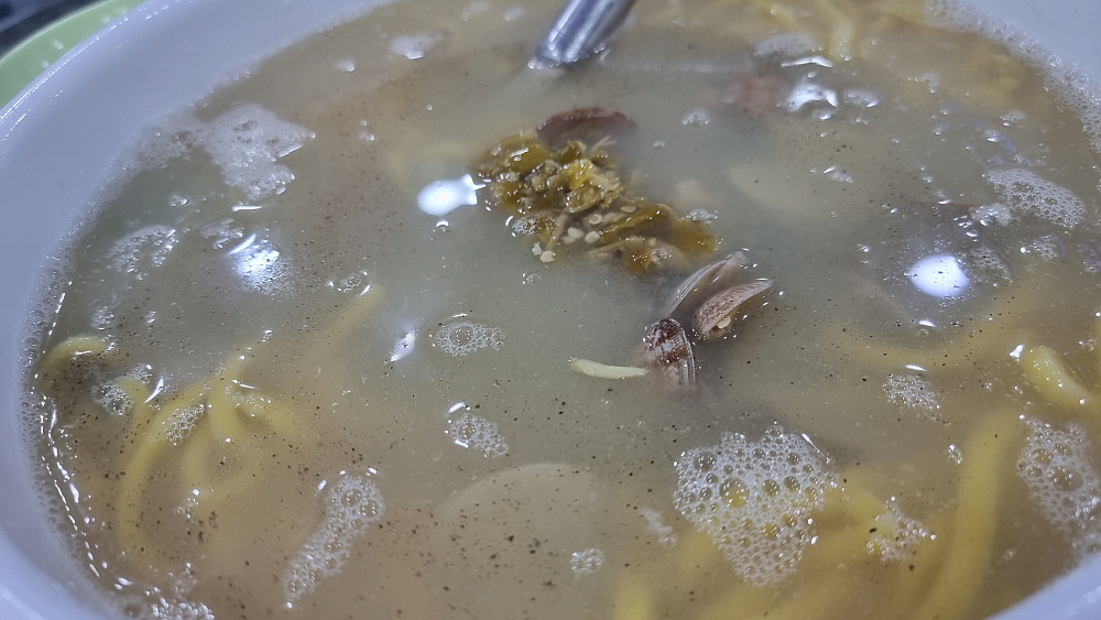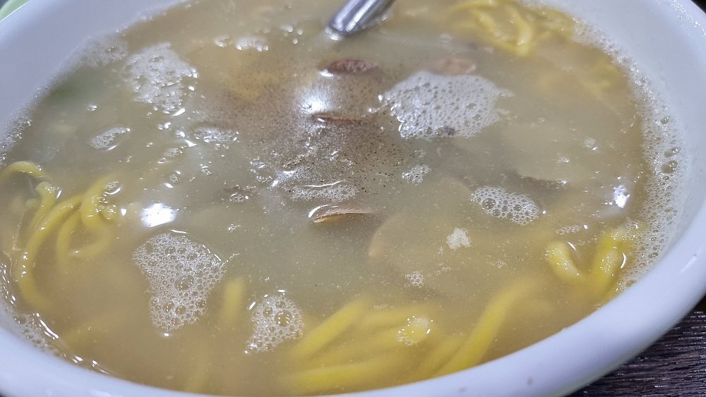 우리가 자주 다니는 양주 최고집에 비하면 바지락의 크기나 양은 적은 편이다. 바지락이 어찌나 작던지 재첩인줄 알았다. 그래도 다행히 바지락 국물의 맛은 괜찮았다. 과연 본점이라는 말이 무색하지 않은 그런 내공이 느껴지는 맛이었다. 면도 노랑색이었는데 뭘 넣었는지 몰라도 아마도 일부러 이렇게 만든 것 같았다. 다른 손님들은 여기에 만두며 수육을 함께 주문해서 먹는 사람이 많았는데 우린 그냥 칼국수만 먹었다. 사실 이것도 다 먹으면 염분 과다에 탄수화물 과다 섭취다. 바지락이 들어간 국물의 특징상 짜지 않으면 맛이 안 난다. 그러니 칼국수 먹는 날은 어느 정도 몸에 미안할 각오를 해야 한다.