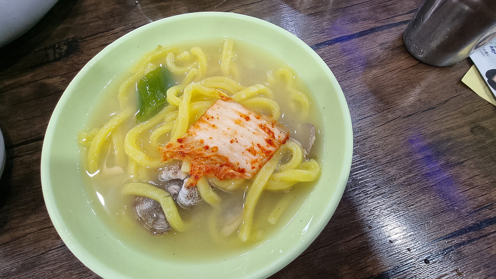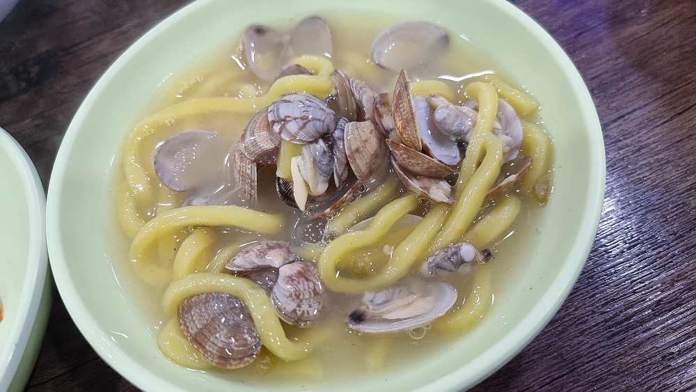 우리가 자주 다니는 양주 최고집에 비하면 바지락의 크기나 양은 적은 편이다. 바지락이 어찌나 작던지 재첩인줄 알았다. 그래도 다행히 바지락 국물의 맛은 괜찮았다. 과연 본점이라는 말이 무색하지 않은 그런 내공이 느껴지는 맛이었다. 면도 노랑색이었는데 뭘 넣었는지 몰라도 아마도 일부러 이렇게 만든 것 같았다. 다른 손님들은 여기에 만두며 수육을 함께 주문해서 먹는 사람이 많았는데 우린 그냥 칼국수만 먹었다. 사실 이것도 다 먹으면 염분 과다에 탄수화물 과다 섭취다. 바지락이 들어간 국물의 특징상 짜지 않으면 맛이 안 난다. 그러니 칼국수 먹는 날은 어느 정도 몸에 미안할 각오를 해야 한다.