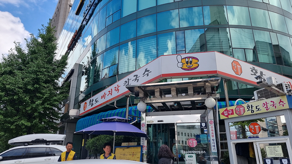 서울에서 일을 마치고 올라오는 길에 칼국수 생각이 간절해서 검색을 해 보았다. 예전부터 우린 칼국수 하면 바지락 칼국수를 선택했는데 마침 석촌역 근처에 단골들이 많다는 바지락 칼국수 집이 있었다. 같은 이름의 칼국수 집을 몇 번 간적이 있는데 길동에 있었다. 여긴 처음 와보는 곳인데 여기도 황도바지락 칼국수의 본점이란다. 번잡하고 사람 많은 석촌역 바로 앞에 있지만 여긴 발렛파킹이 된다. 즉, 주차를 할 수 있다. 어쩌면 이런 이유 때문에 사람이 더 많은지도 모르겠다. 가만히 보니 주차를 해주는 직원만 4~5명은 되는 것 같았다.