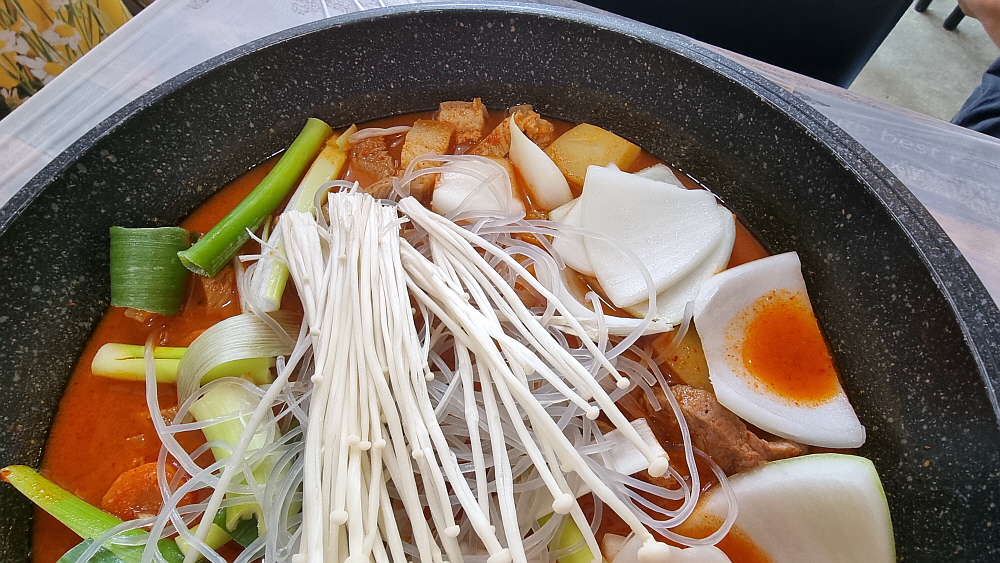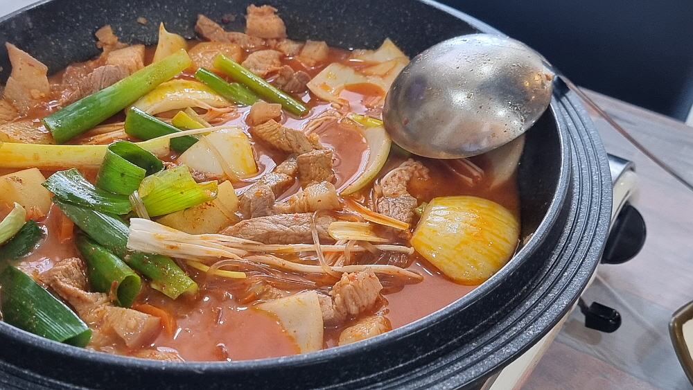 잘 익은 돼지고기를 상추쌈에 싸 먹는 재미도 쏠쏠했다. 원래 닭도리탕은 양념에 밥을 비벼 먹는 것이 국룰이다. 그러니 당연히 이런 양념을 밥과 함께 먹어야 한다. 여기는 라면사리가 무료에 무한리필이란다. 그렇지만 이 양념을 쫄여 버리기 싫어서 라면사리를 넣지 않았다. 그렇게나 좋아하는데 말이다. 진하고 달달하면서 뭔가 먹은 것 같은 넉넉한 맛이 이집의 장점이라 해야겠다. 그렇지만 역시나 김치가 들어가지 않았다는 점은 먹는 내내 아쉬웠다. 한국사람들의 찌개에는 역시 김치가 들어가야 하는데 말이다. 그래도 참 맛나게 잘 먹은 점심이었다.