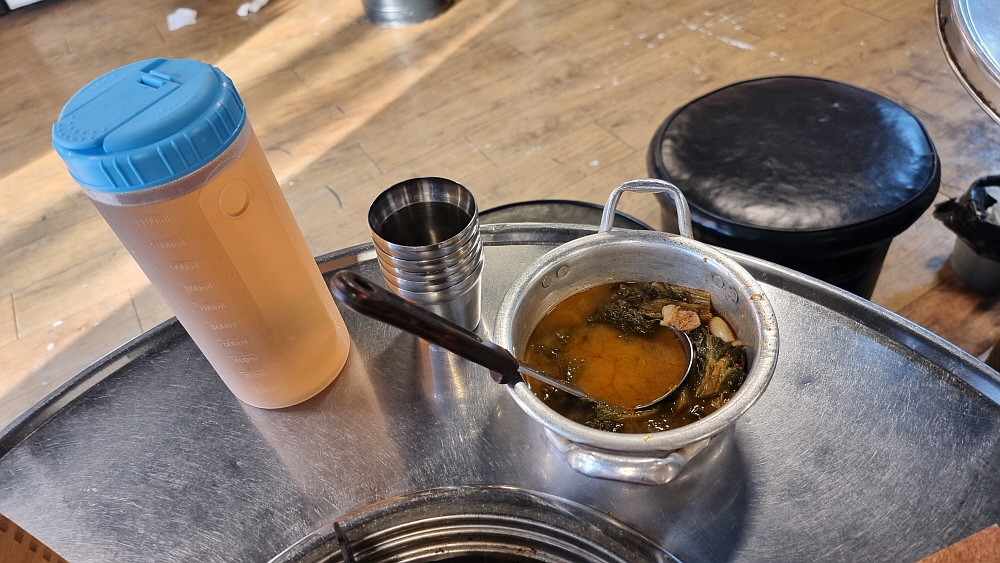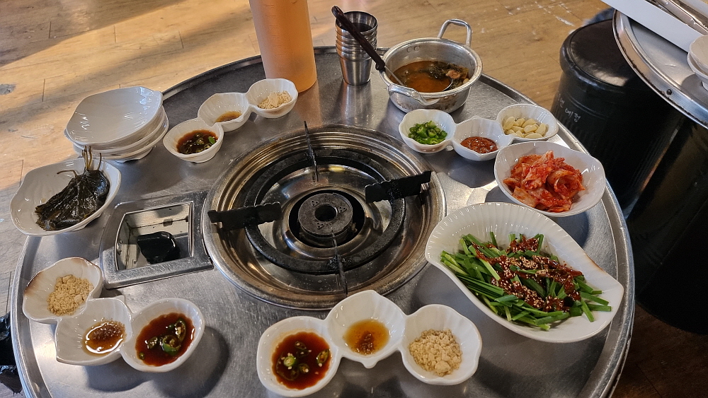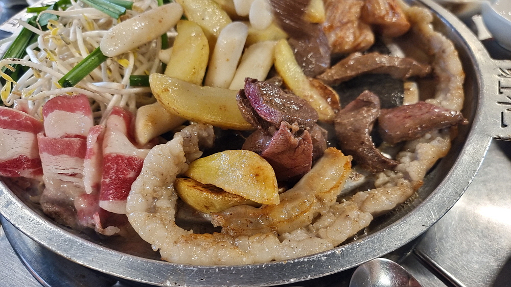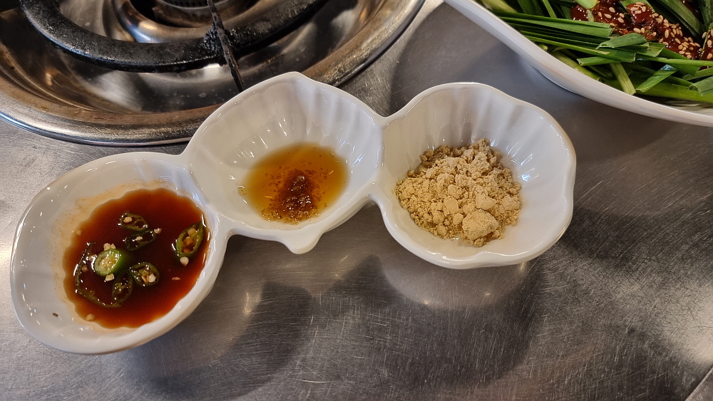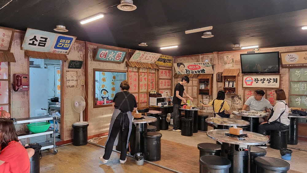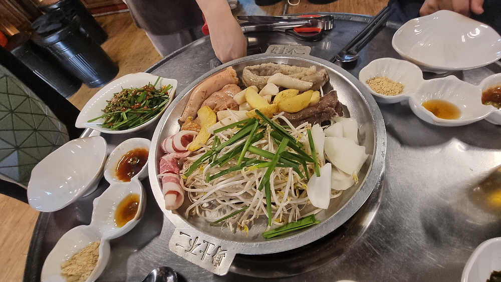 마치 70~80년대를 연상케 하는 인테리어가 이집의 특징이었다. 조금 이른 시간임에도 손님들이 몇 팀 있었다. 소곱창은 누구라도 작정하고 와야 하는 곳이니 이 정도 손님이 있다는 것도 대단한 일이다. 가격을 보니 역시 소곱창의 압박이 그대로 느껴지는 정도였다. 가장 인기가 좋다는 소곱창은 200g 일인분에 24,000원이다. 우린 그냥 대창도 먹고, 막창도 먹기 위해 모듬을 주문했다. 모듬은 200g에 21,000원으로 소곱창 보다 3,000원이 저렴하다. 곱창보다 대창이나 막창이 저렴하다는 반증일 것이다. 대부분의 소곱창 집들처럼 여기도 미리 선지국 같은 에피타이저가 나온다.