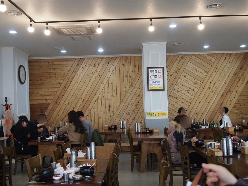 친구 말로는 이집이 원래는 지금 위치보다 아랫쪽에 있었단다. 장사가 잘 되어 건물을 새로 짓고 여기로 이사를 왔다는 것이다. 다른 모든 맛집 식당들이 그렇듯 솜씨 좋은 음식을 팔면서 집안이 일어난 곳이라 하겠다. 새로 지은 건물이기 때문에 실내나 외관이나 모두 엄청 깔끔하고 세련되어 보였다. 비교적 이른 아침임에도 불구하고 식당 안에는 사람들이 꽤나 많았다. 역시 인기 높은 집이라는 것을 실감케 하는 대목이었다. 무엇을 먹을까 메뉴픞 살펴 보면 너무나 단촐하다. 해장국과 순대국 밖에 없다. 모두 9,000원 이다. 다른 집들에 비하면 분명 가격이 센 편이다. 뭘 믿고 이렇게 단촐하게 비싸게 팔고 있을까 하는 의아심도 들고, 자신이 넘쳐 이런 영업방식을 취하는 것이겠지 싶기도 했다.