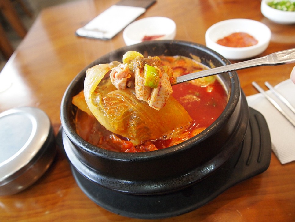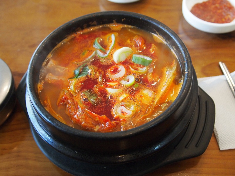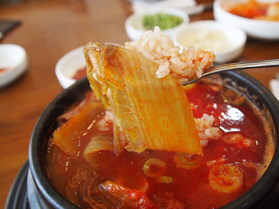 유통이 잘 되는 선지 해장국집의 특징이자 장점은 선지가 신선하다는 것이다. 그저 국물을 내기만 하는 것 같지만 선지도 신선할 때 먹는 것과 오랫 동안 냄비 안에서 끓여진 것과는 당연히 맛에 차이가 난다. 이집의 선지는 매우 신선한 것이었다. 이른 아침부터 손님들이 몰려드는 집이니 어찌 보면 당연한 일이다. 순대국에는 정말 특이하게 우거지가 듬뿍 들어 있다. 내가 평소 먹던 순대국은 돼지부속고기 들이 그득하게 들어간 고깃국이었다. 다른 야채가 들어간 틈이 별로 없는 것이 순대국이기 마련이데 여긴 아니었다. 그리고 정말 마지막 신선한 충격은 엄청 매우면서 깔끔한 국물이었다. 비록 아침부터 육수를 이마에서 연신 뽑아 낸다 해도 이런 국물이라면 마다하고 싶지 않다.