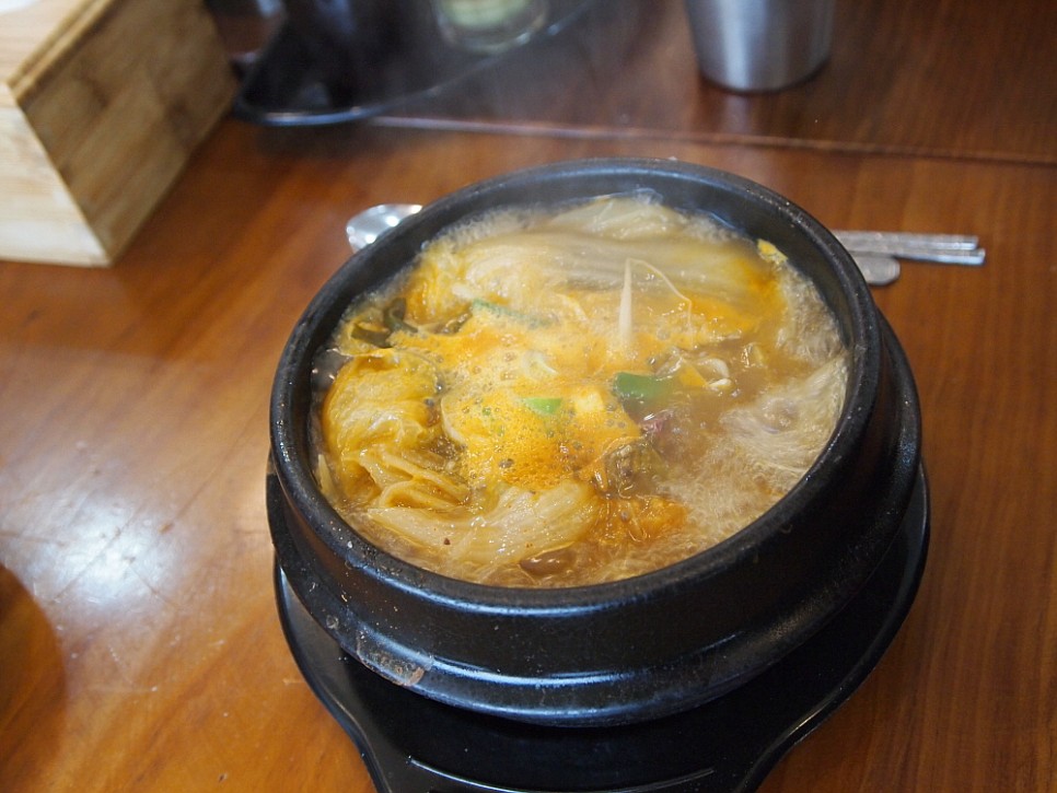 아무리 맵다 해도 한국 사람은 이 국물에 또 매콤한 김치나 깍뚜기를 얹어 먹어야 한다. 고슬한 밥을 말고 정말 국밥처럼 숟가락을 푹푹 떠서 김치와 함께 먹어야 제맛이다. 정말 제대로 된 해장이다. 어제 먹은 술들이 몸 안에서 피할 곳이 없다. 남김 없이 죄다 없애 버리겠다는 심정으로 이 맵고 뜨거운 국물을 한약 먹듯 그렇게 정성을 다해 먹었다. 아 이집의 9,000원 이라는 가격이 결코 비싼 것이 아니었다. 이런 뜨거운 국밥을 먹을 땐 대화가 끊어진다. 당연한 일이다. 사람이 입라는 것이 컴퓨터 처럼 멀티태스킹이 제대로 되긴 어렵다. 먹을 땐 그저 먹는 일에 집중해야 한다. 하지만 우린 또 참 많은 말들을 주고 받았다. 재밌다. 즐겁다. 그리고 참 고맙다. 여주를 자주 오려고 한다. 여긴 먹거리 천국같다. 그리고 나의 친구가 있어 전혀 낯설지 않다. 좋은 곳이다.