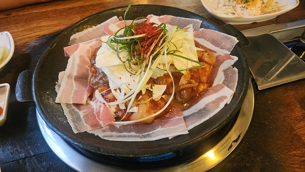 보통은 그냥 쭈꾸미만 주문하지 않는다. 우리도 대패삼겹살과 쭈꾸미가 함께 들어간 세트를 주문했다. 쭈꾸미의 맵기는 가장 덜 매운 것으로 했다. 맵질에게는 보통맛도 고통일 수 있다. 가게 안은 실내포장마차처럼 식당이라기 보다는 술집에 가까운 분위기였다. 적당히 어둡고, 안정적인 분위기인 것이 가족들과 와서 외식을 하는 곳이라기 보다는 우리처럼 동료들과 함께 와서 술 한 잔 하면서 저녁을 먹기에 더 좋은 곳인 거 같다. 다른 메뉴가 없기 때문에 다들 쭈꾸미를 먹고 있었다. 소주 안주로 이만한 것도 없으니 인기가 좋을 수밖에...