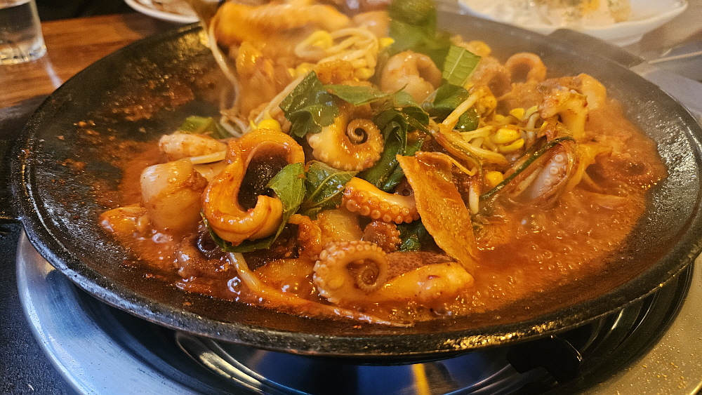 이날은 정말 성공적이었는데 맵기가 딱 먹기 적당한 정도로 아주 맘에 들었다. 쭈꾸미도 신선한 것 같았고, 양도 이 정도면 적당한 것 같았다. 소주 한 잔 들이키기에 최적의 조건이었다. 쌈처럼 싸먹는 깻잎은 잎이 엄청 크다. 그래서 향도 더 강했다. 이렇게 쇠냄새가 나는 잎을 왜 먹냐는 외국인들의 이야기가 일리가 있다는 생각이 드는 순간이었다. 하지만 우리야 없어서 못 먹지... 쭈꾸미나 낙지나 오징어 같은 애들은 이상하게도 꼭 이렇게 맵게 양념을 해서 먹는다. 이유가 뭘까? 오늘 궁금한 것 참 많네... 쭈꾸미 가격은 그래도 많이 오르지 않아 다행이다. 요즘 정말 돈 만 원으로 먹을 것이 없는데 말이다.