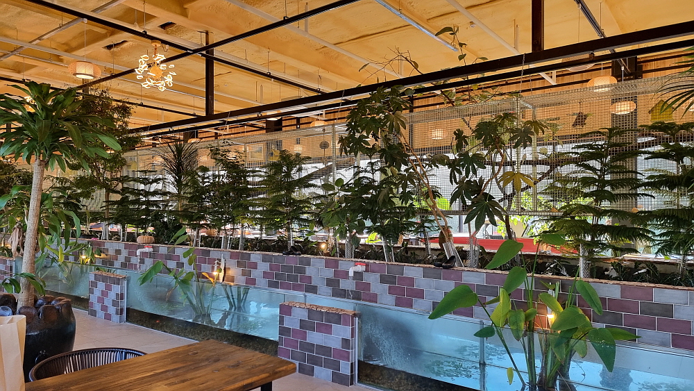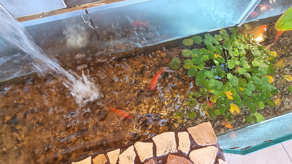 2층에 올라가면 한 가운데 새장과 함께 토끼들의 서식공간이 있다. 그 아래에는 잉어들이 노니는 연못도 있다. 토끼가 정말 살고 있는 곳으로 10여 마리의 토끼들이 먹이도 먹고 잠도 자고, 자기들끼리 어울려 놀기도 한다. 동물원도 아닌데 이렇게 토끼와 새들을 볼 수 있다니... 참 놀라운 카페라 하겠다. 새들 소리와 물소리가 어울려서 잔잔하게 깔린 음악보다 더 좋은 배경이 되고 있었다. 자연을 벗삼아 차 한 잔 마시는 것 같은 기분이 들어 참 평안했다. 이런 컨셉의 카페는 보기 드문데 어떻게 이런 생각을 다 했는지 대단한 곳이다.