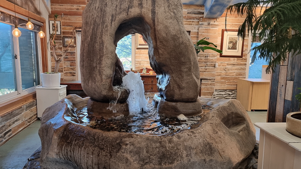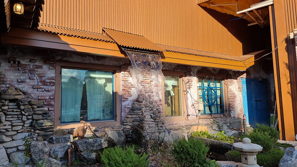 그런 의미에서 보면 여기는 정말 휴식처 같은 곳이다. 시원하고 탁 트인 전망에 새소리와 물소리를 들으며 마시는 커피와 달달한 빵이 주는 몇 시간의 달콤한 힐링이다. 가만히 보니 실내에 자동차도 인테리어로 갖다 놓았다. 도대체 비용을 얼마나 들인 것일까? 희안하게도 저녁 6시쯤이 되니까 손님들이 약속이나 한 듯 모두들 나가 버렸다. 다들 다시 일터로 돌아들 가는 것일까? 아니면 일상으로 복귀? 아무튼 이곳은 그냥 카페는 아닌 듯 하다. 힐링의 공간이 맞다.