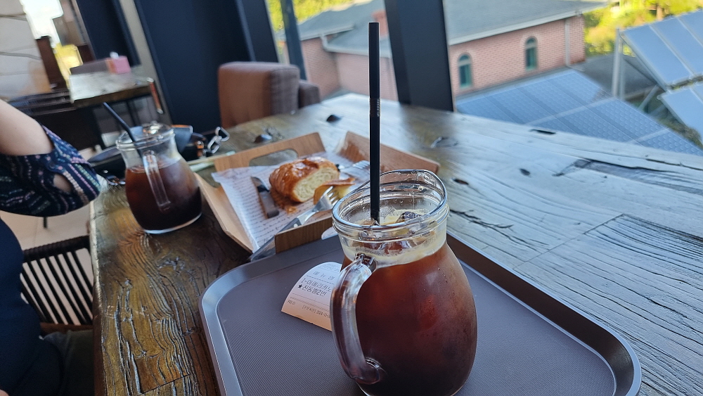 예전에 가끔 놀러 갔던 서울대공원이 생각났다. 이런 분위기는 아니었지만 거기서 뭔가 새로운 느낌으로 차 한 잔 마신 기억은 있다. 바로 그런 새로움이다. 분위기도 좋지만 커피 맛도 괜찮았다. 시원하면서 고소하고 쌉쌀한 커피와 달달한 빵은 정말 잘 어울리는 궁합니다. 아마 이래서 요즘에 사람들이 커피와 빵을 함께 먹는 모양이다. 평소엔 빵을 거들떠 보지도 않지만 여기 앉아 있으니 몇 조각을 먹어야 할 것 같았다. 입소문을 타서 그런지 사람들은 이곳을 이미 많이들 알고 있단다. 그리고 빵이나 커피도 좋지만 몇 시간 앉아 수다를 떨면서 힐링을 하고 간단다.