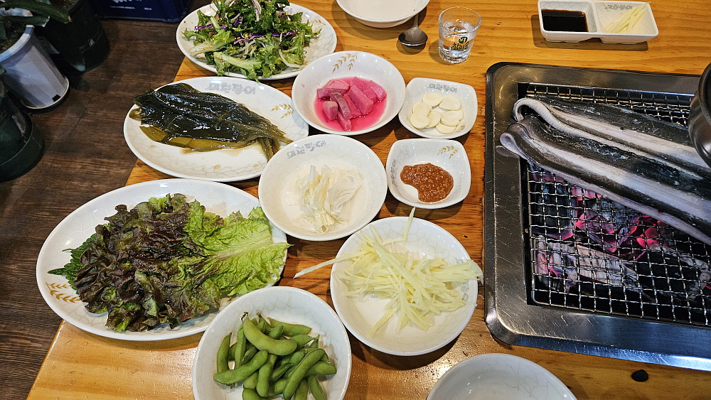 장어구이는 다른 양념없이 그냥 소금구이로 먹는 것이 가장 맛이 좋다. 물론 다 익은 장어는 맛난 특유의 양념에 찍어 먹어야 하긴 하다. 왜 그런지 몰라도 장어는 꼭 명이나물에 싸 먹는 것이 의례적인 것으로 되어 있다. 둘이 궁합이 잘 맞아서겠지? 한 때 명이나물도 몸에 좋다하여 가격이 꽤나 치솟았던 적이 있다. 그때는 장어집에서 명이나물 더 먹으려면 눈치가 보일 정도 였는데 이젠 그렇지는 않은 모양이다. 화력 좋은 참숯에 장어를 올리면 금새 노릇 노릇하게 잘 구어진다. 그 때부터는 종업원들의 전문가적인 터치가 있어야 제대로 된 장어구이를 먹을 수 있다.