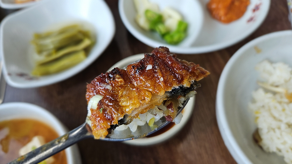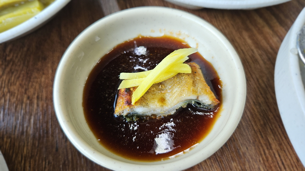 우리는 이날 간단하게 장어탕에 밥 한 그릇 먹고 가려고 했다. 하지만 특이한 메뉴가 더 있는데 바로 장어정식이다. 일 인에 30,000원인 장어정식도 다른 집에서는 보기 드문 아이템이다. 장어정식의 장어는 구워져 나오는데 양념된 고기와 그렇지 않은 고기를 적당히 섞어 준다. 따로 불을 피우지 않아도 간단하게 자리에 앉아 알맞게 잘 익은 장어를 밥과 함께 먹을 수 있다. 반찬도 많이 나오는 편이라 백반같은 느낌도 준다. 일본 사람들이 그렇게 죽고 못사는 장어 반찬이면 사실 다른 반찬은 별 필요가 없지만 우리나라 사람들이야 아무리 장어라도 이런 저런 밑반찬이 나오는 것이 좋은 법이다.