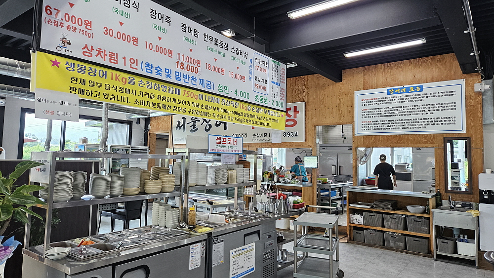 골프장이 많은 포천시에는 이른 새벽부터 골프치러 오는 사람들을 상대하는 아침형 식당들이 제법 많다. 불경기라는 요즘 그래도 이런 손님들 덕분에 어느 정도는 매상이 오른다는 말들을 한다. 군내면 용정사거리 부근에도 이런 식당들이 있다. 그 중에서 지나면서 한 번은 꼭 가고 싶었던 집이 있다. 서울장어라는 식당이다. 장어를 좋아하는 사람들은 누구나 눈길이 갈만한 집이다. 특히 식당에 써 있는 보양에는 장어가 최고라는 말이 그렇게 와 닿을 수 없다. 이집은 특이하게 어죽과 장어탕을 점심메뉴로도 팔고 있다. 보통 장어는 저녁에 술과 함께 구워 먹는 것이 전부라 생각했던 사람들에겐 새로운 도전이 되는 곳이다.