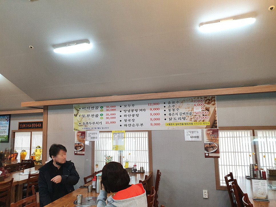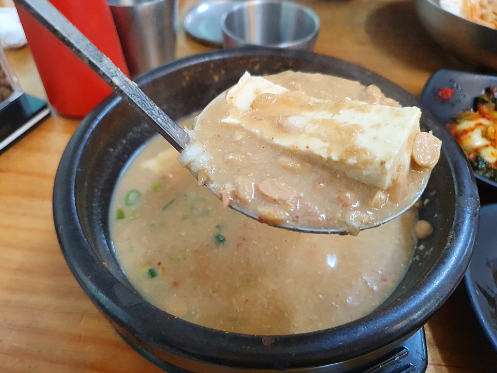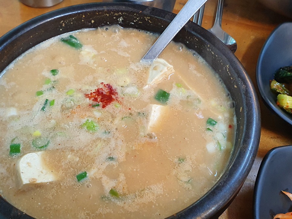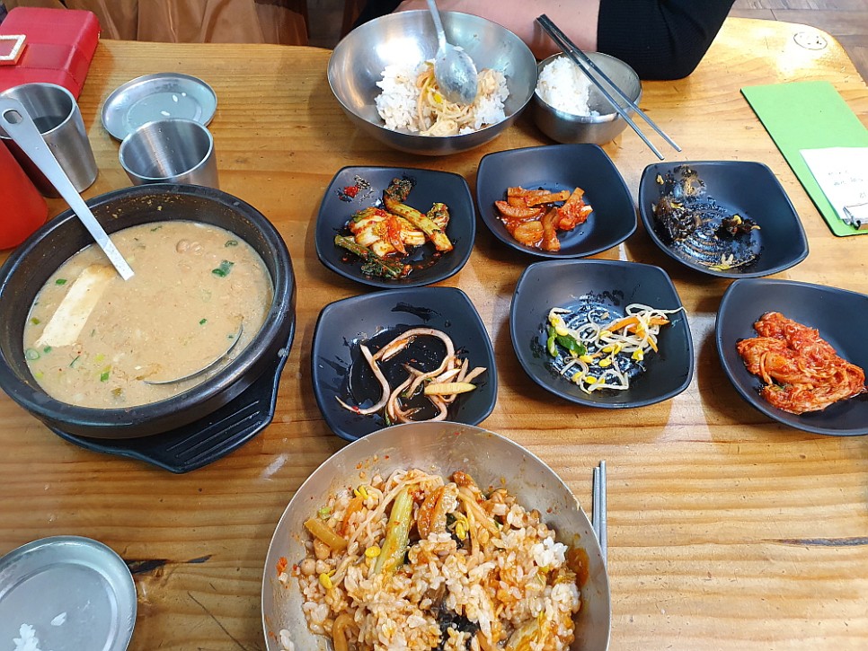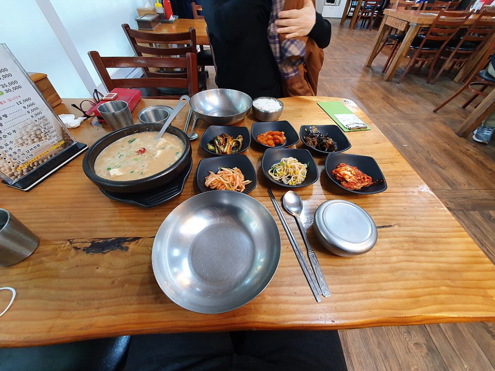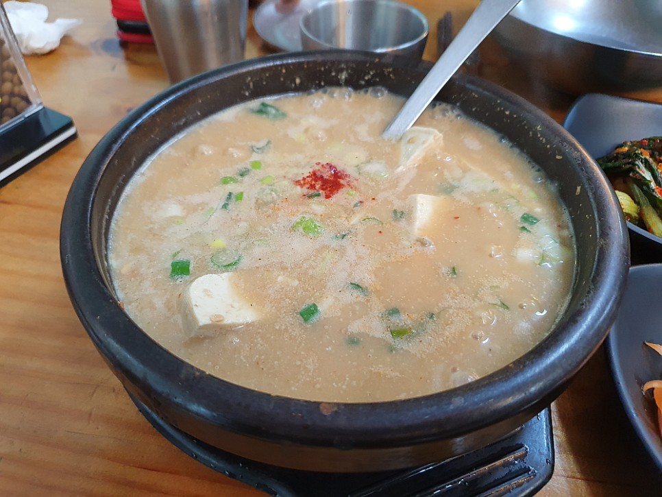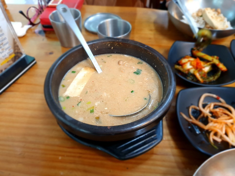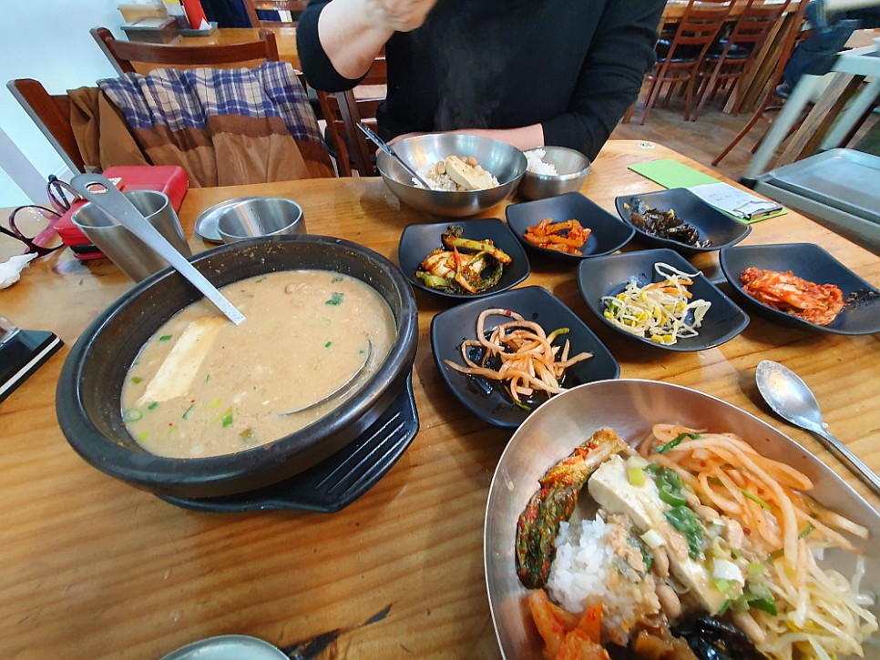 그런데 한가 할 줄 알았는데 그게 아니었다. 제법 손님들이 많았다. 주로 차로 이동하는 외지 사람들 같았다. 다 비슷한 생각들을 한 것이다. 입에도 좋고, 몸에도 좋은 청국장으로 휴일의 오후를 건강하게 채워 보자는 생각말이다. 다른 콩비지나 맑은 콩탕 같은 음식도 있지만 우린 역시 정공법을 택했다. 청국장 두 개를 달라고 했다. 청국장이 대표인 집에서는 일단 시그니쳐 메뉴에 집중해 보는 것이 현명한 일일 것이다. 다른 사람들을 보니 청국장 만 먹는 곳은 별로 없고, 대개 청국장과 다른 음식들을 섞어서 먹고 있었다. 이게 더 현명한 일일지 우리가 더 나은 선택일지 봐야 알 것이다.