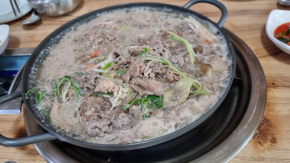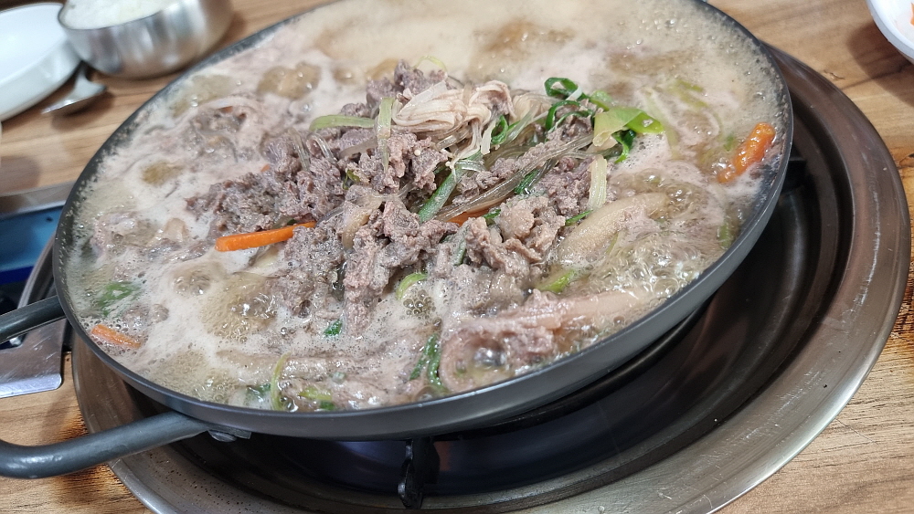 포천시청 근처엔 정말 많은 식당들이 있다. 거의 대부분 공무원과 주변의 관공서 관계자들을 상대하는 곳들이다. 어느 집을 가든 아는 사람을 한 두 사람은 만나게 되고, 익숙한 맛과 풍경이 연출된다. 우리도 어느덧 시청 부근 식당들에 단골이 된 것이다. 뭔가 색다르고 특별한 점심을 먹고 싶을 때 생각하는 아이템이 있다. 바로 '불고기'이다. 예전에 자주 먹었던 굴물 불고기가 그것이다. 바싹 불고기처럼 고기 자체에만 전념하여 먹는 것이 아니라 고기와 야채와 국물을 다 즐길 수 있는 점심 메뉴이다. 사실 불고기는 회식 아이템이기도 하고, 안주거리이기도 하다.