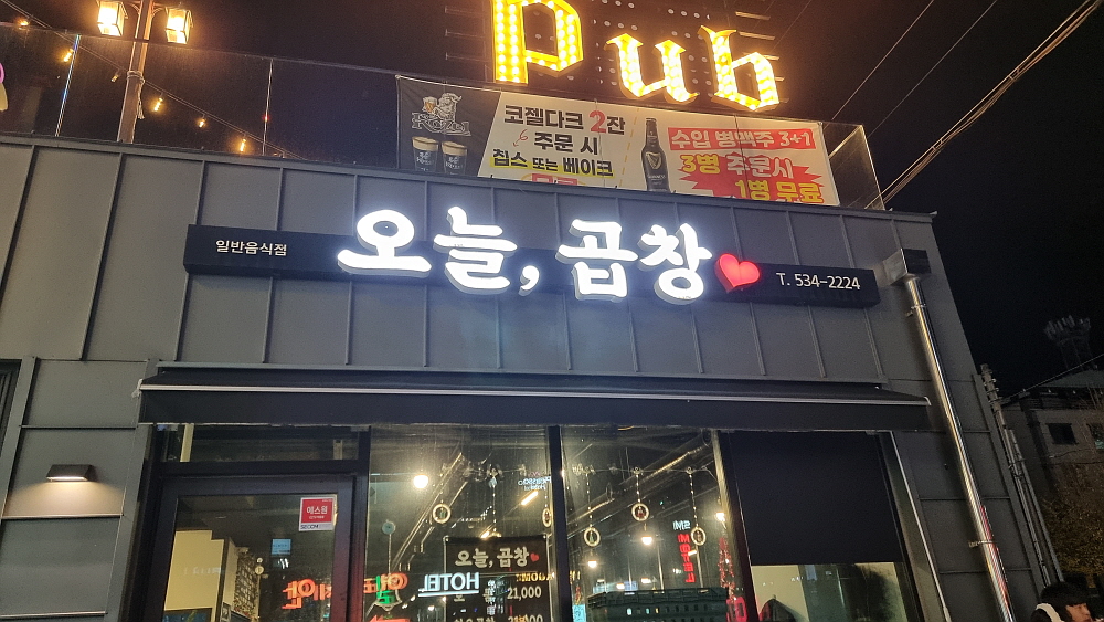 기분이 좋을 때는 가장 좋아하는 음식을 먹어주는 것이 좋은 일이다. 숙소로 들어가면서 본 곱창집을 찾아가기로 했다. 이름은 오늘곱창이다. 곱창은 사실 아주 좋은 아이템은 아니다. 기름이 많지만 단백질은 많지 않다. 건강스러운 음식은 아니지만 식감만은 어떤 음식에도 뒤지지 않는다. 그리고 가격도 한우 등심처럼 비싼 편이다. 양 대비 가격으로는 한우와 크게 다르지 않다. 아무튼 이런 곱창을 맘껏 먹고 싶어 이집을 찾았다. 조금은 이른 시간임에도 가게에는 손님들이 많았다. 역시 곱창은 찾는 사람이 많다. 우리는 모듬도 필요없고 그저 곱창이 먹고 싶어 곱창으로 2인분을 주문했다.